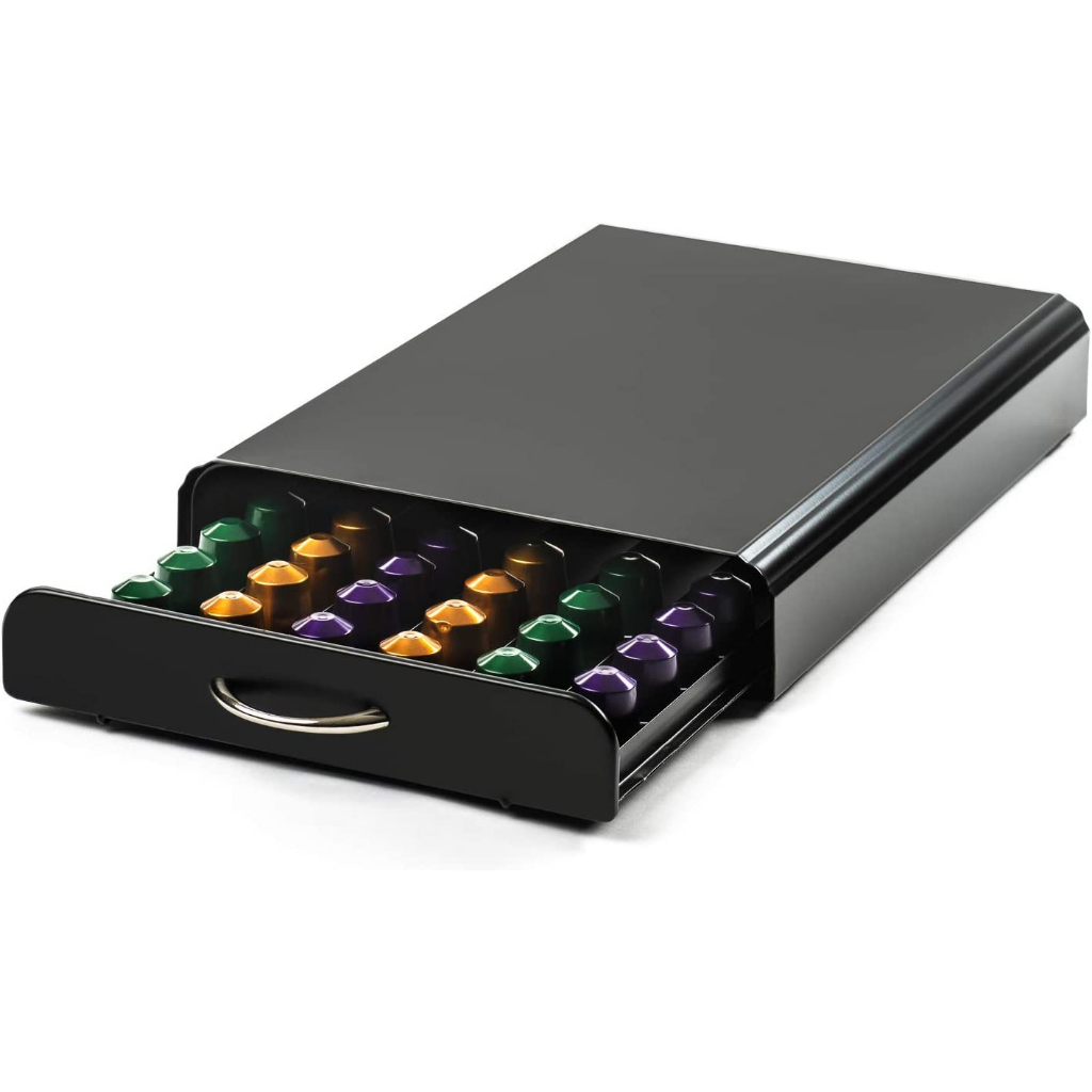 60pc Nespresso Capsule Drawer Pod Holder Carbon Black Machine Stand Rack