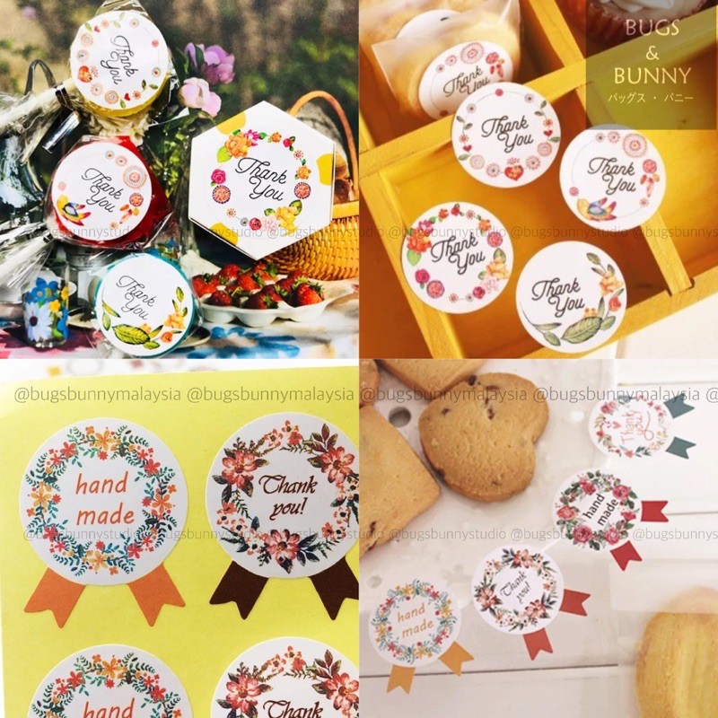 60pcs Thank You Sticker Terima Kasih Handmade Sticker Seal Label Sticker Dapur Sticker Kereta Stiker Nama