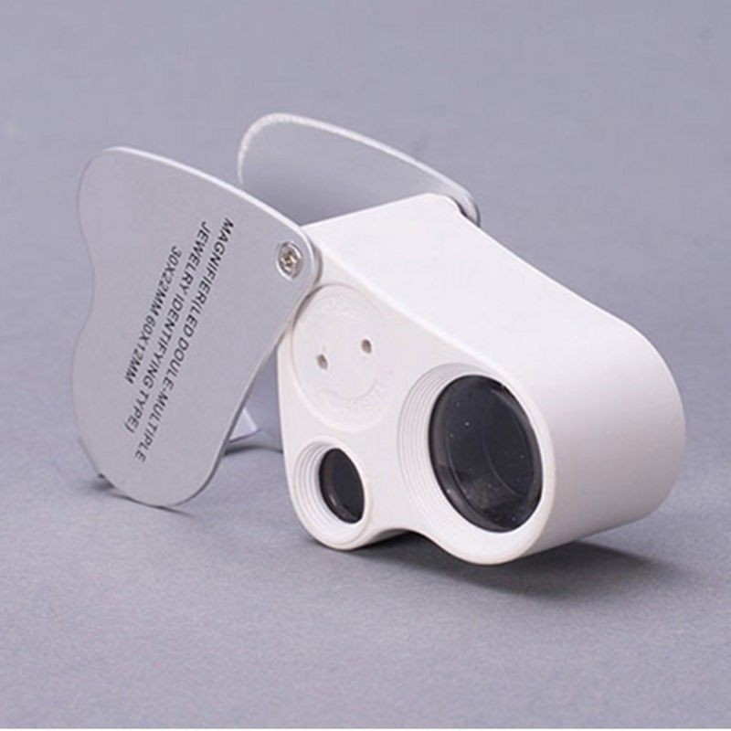 60x 30x Dual Zoom Lens Glass Magnifying Magnifier Jeweler Eye Jewelry Loupe Loop LED Lights(MURAH)