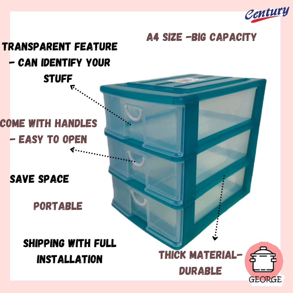 6130 Century A4 Size Mini Drawer 3 tier Paper organizer/ Laci Kecil Saiz A4