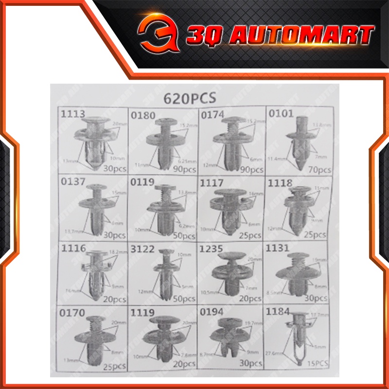 620pcs Car Rivet Bumper Fender Plastic Trim Fastener Retainer Fixing Push Clip Bumper Fender Liner Retainers Fenders Lin