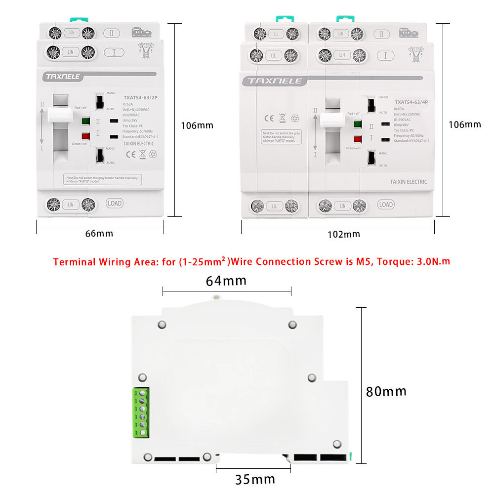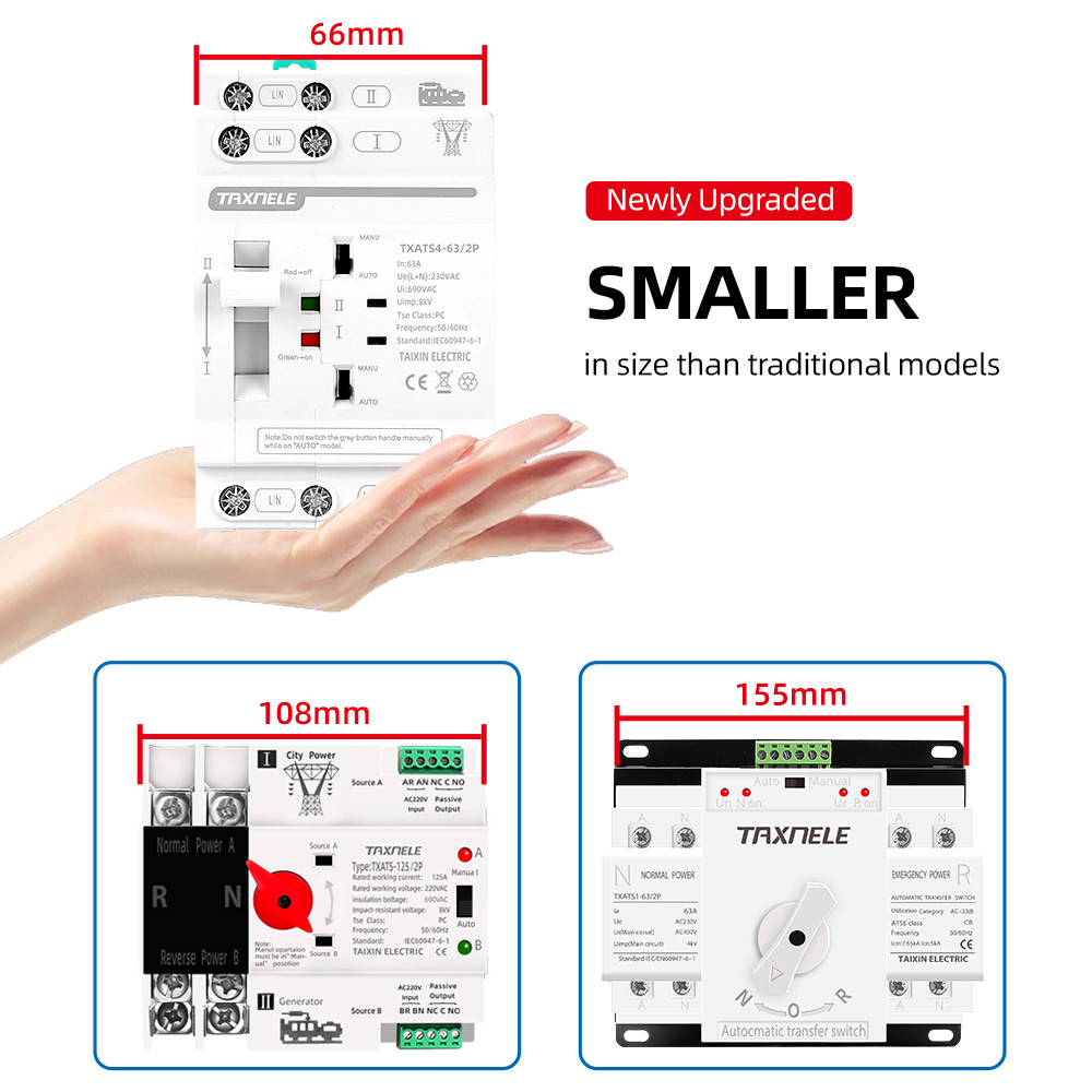 63A ATS Dual Power Automatic Transfer Switch Electrical Selector Switches 2P 4P changeover switch