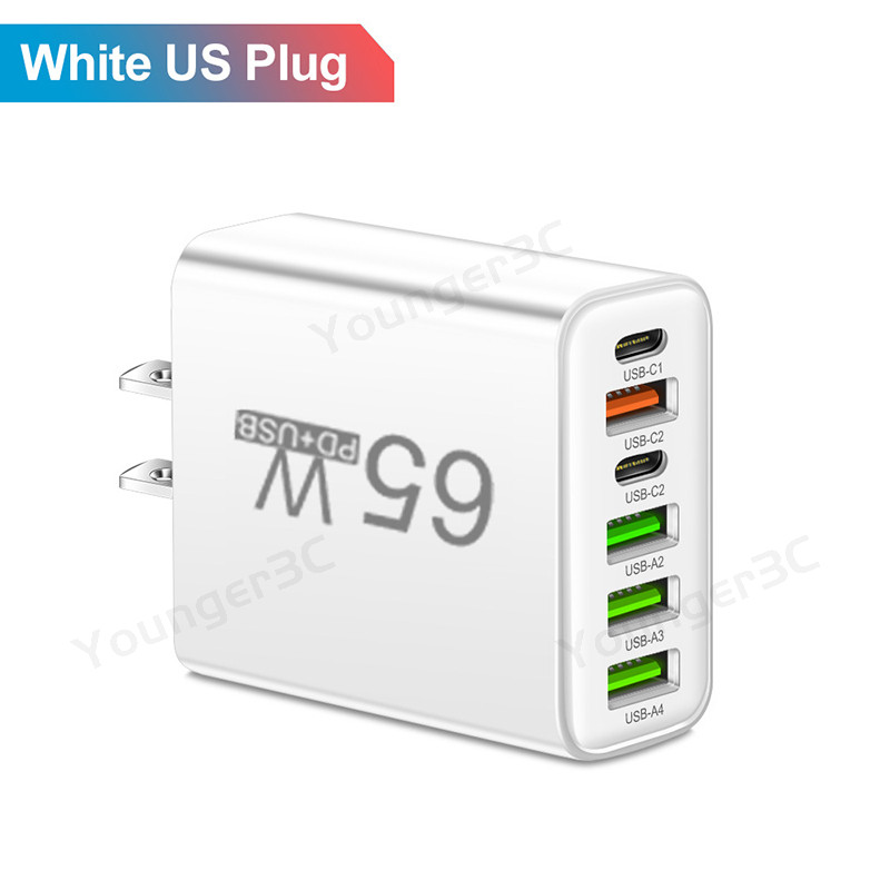 65W Fast Charger 6Ports Travel Conversion Socket 4USB+2PD Power Charging Adapter For ios Micro Type C Phone Adopter Charger