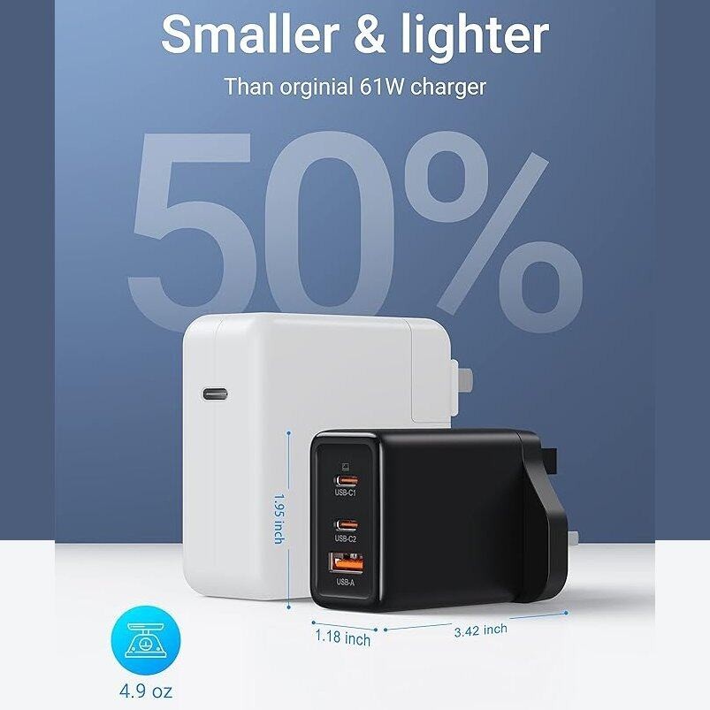 65W USB C Charger Plug 3-Port GaN Fast Charging, USB C Multi Wall Charger Block PD 3.0 PPS Power Adapter IOS / ANDROID