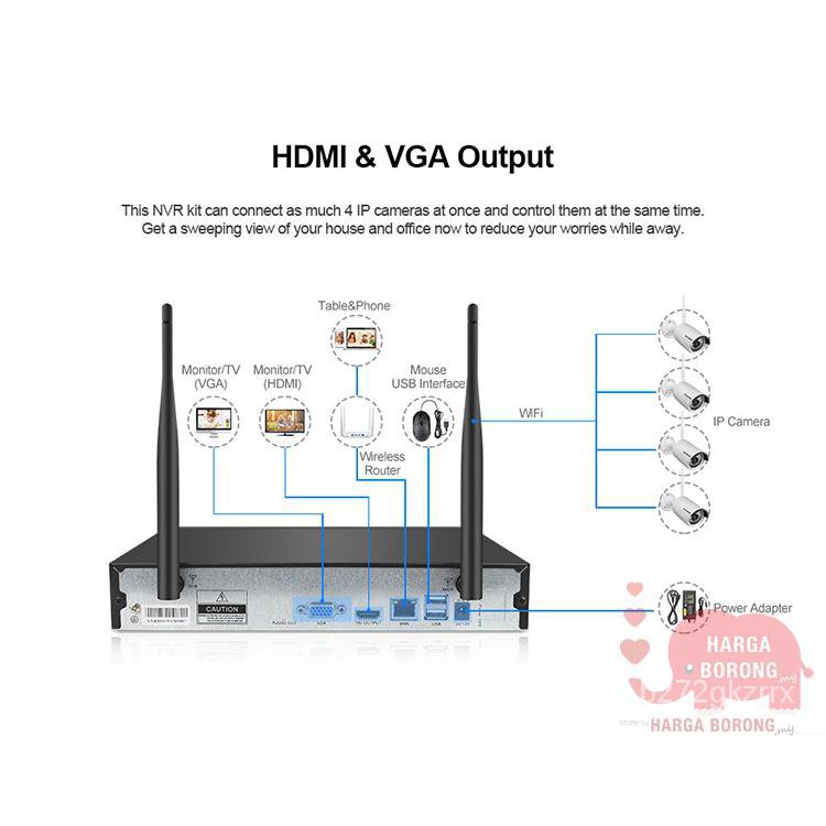 68Uw GOQ 4CH NVR Wireless Security System + 4x 1080P HD WiFi IP Camera CCTV (IP PRO app) (ND-1080)