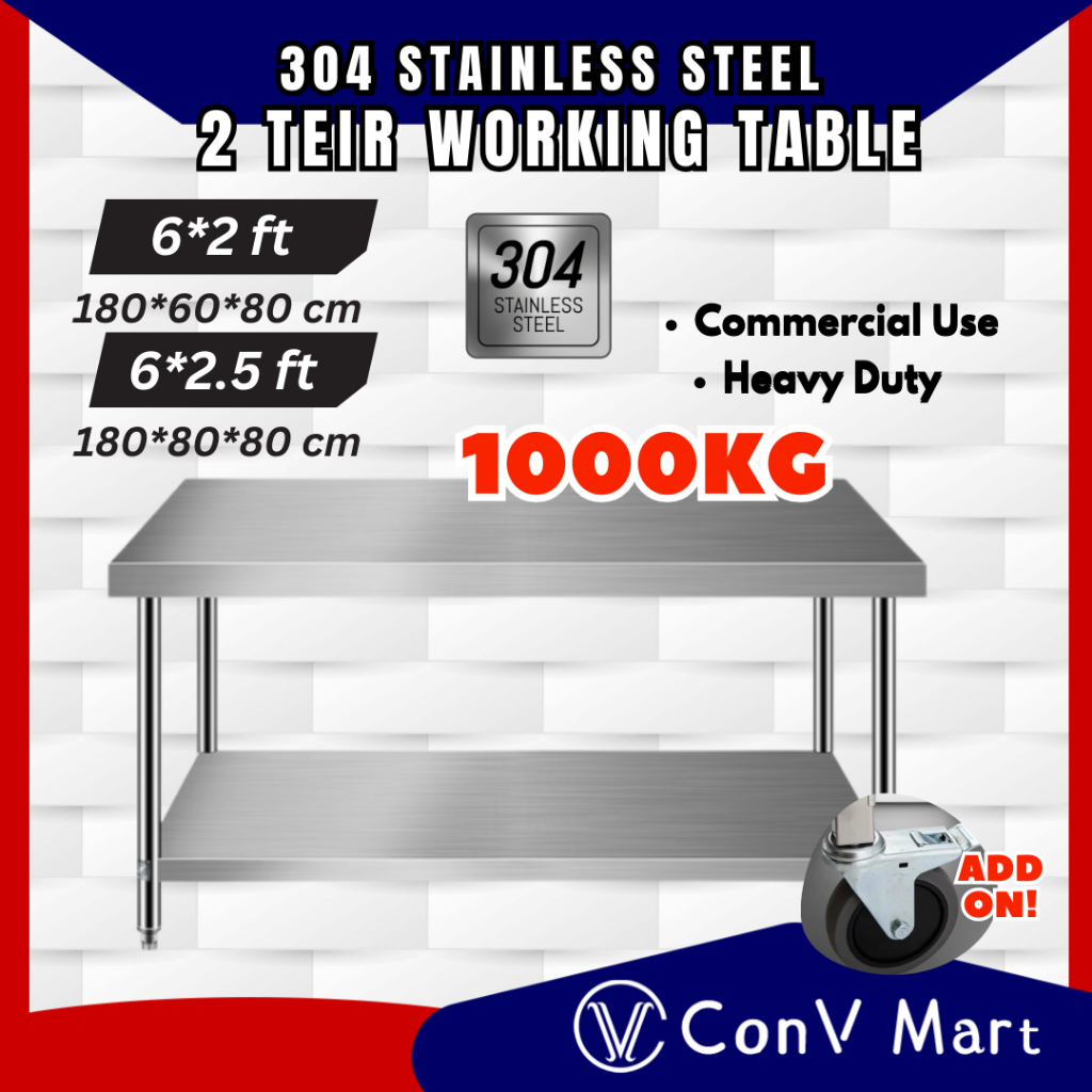 6FT (180cm) 2Tier Stainless Steel Working Table Workbench Kitchen Meja Dapur Makan Kerja Tahan Karat Preparation Table