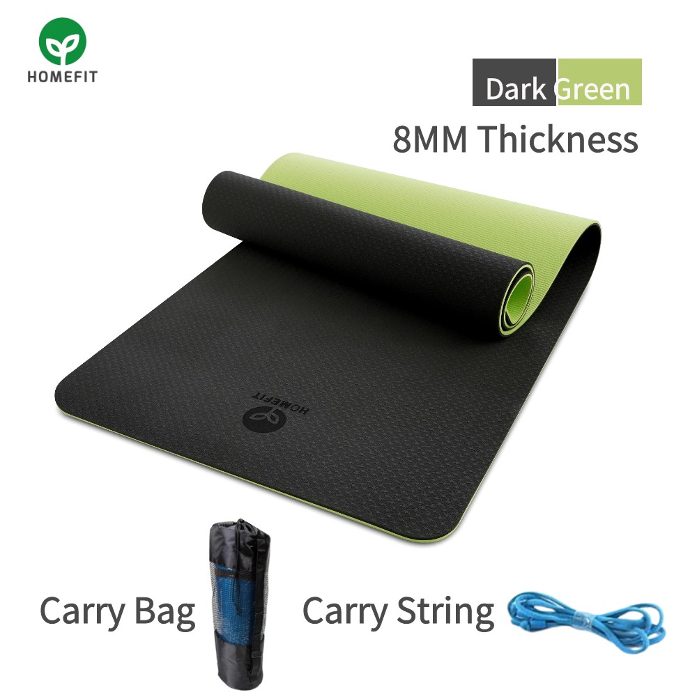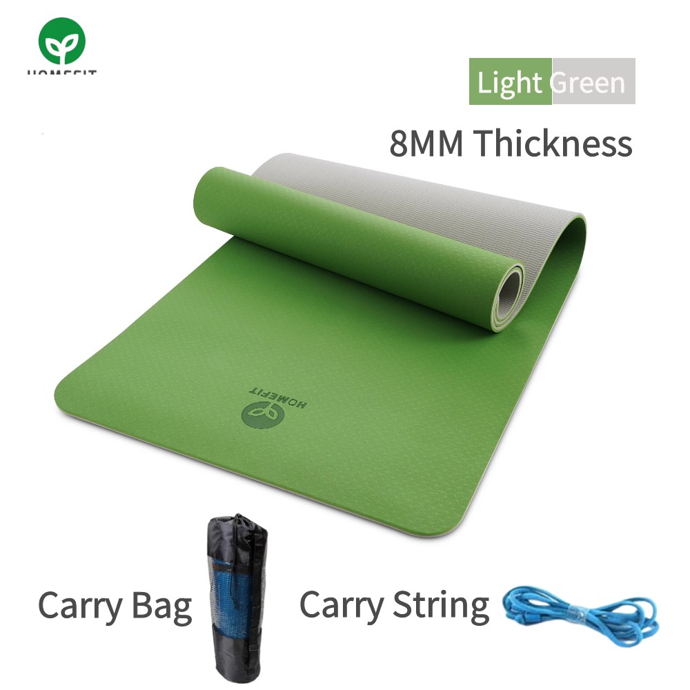 8mm Non-Slip TPE Yoga Mat | Extra Thick Wide Fitness & Pilates Exercise Mat with Free Carry Bag | Free Carry Strap