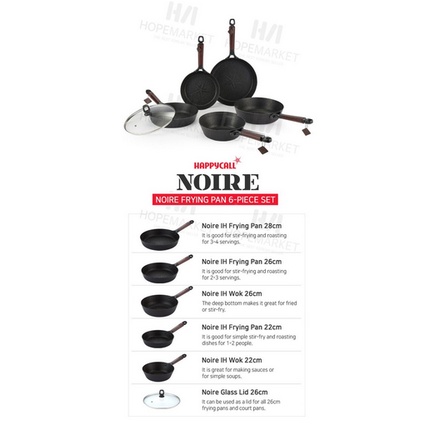 6PC SET HappyCall NEW IH Noire Titanium + Graphene frying pans and woks / cooking Induction pan pot