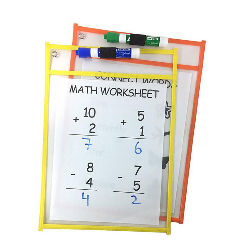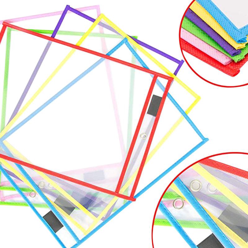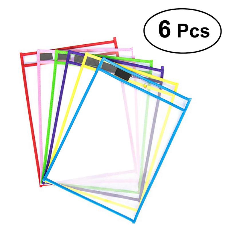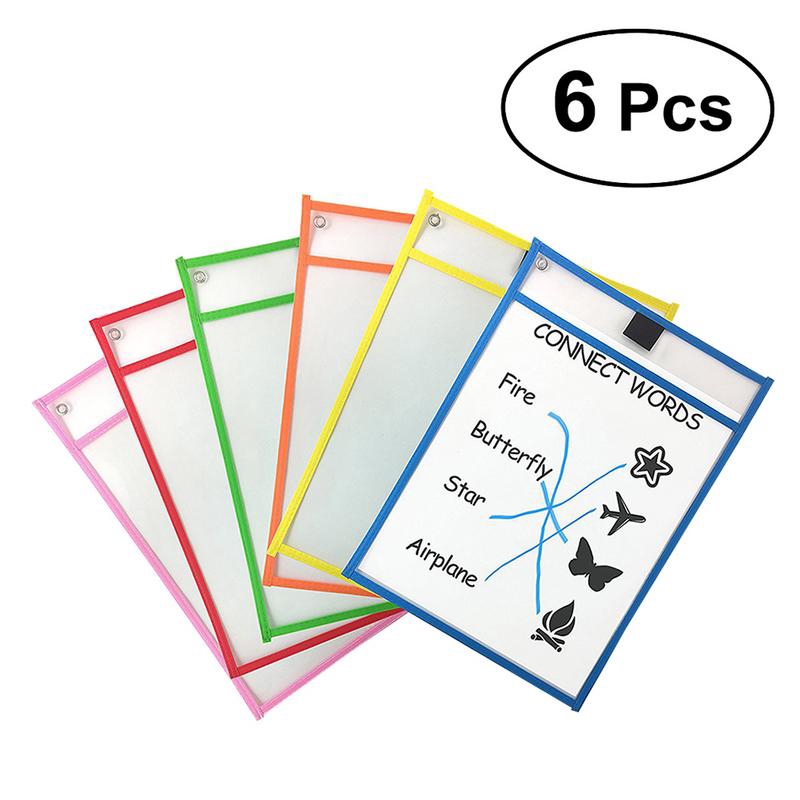 6Pcs Dry Erase File Folder Document Bag Transparent Reusable Writing And Wiping Bags For Office And School Supplies
