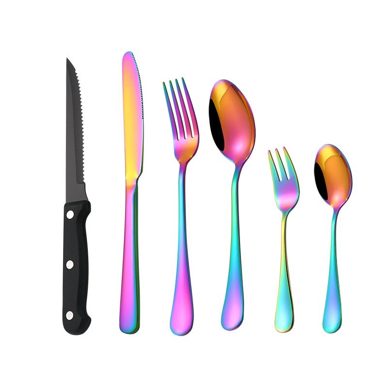 6Pcs Luxury Cutlery Set Stainless Steel Steak Knife Spoon Fork Flatware Set Party Banquet BBQ Steak Knife Kitchen Utensils Tableware Set