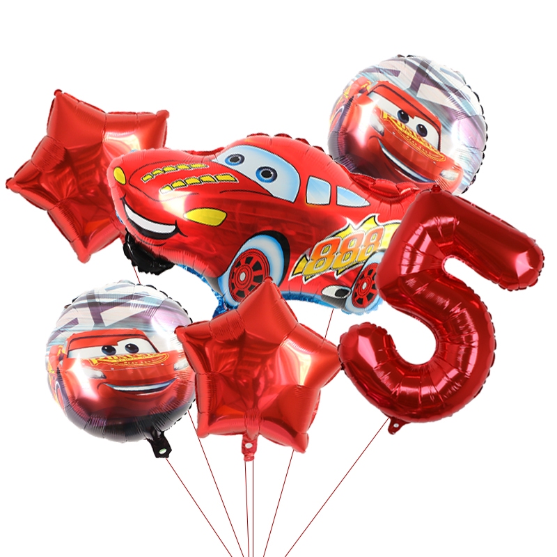 6Pcs McQueen Foil Ballon Birthday Set Boy Animation Cars Series Balloons Lightning Balloon Children's Birthday Party Decorations Boy Toys Gifts