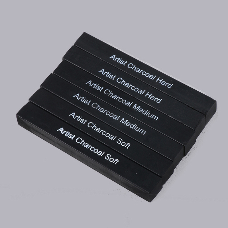 6Pcs Square Sketch Charcoal Sticks 10x10x80mm Soft Medium Hard Sketch Compressed Charcoal Bars Sticks Graphite Rod Art Supplies