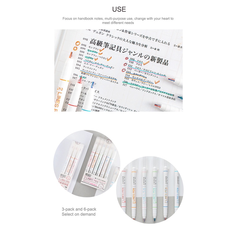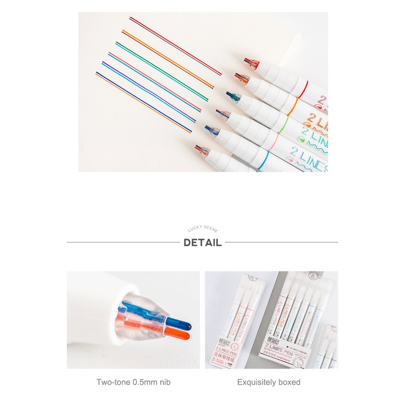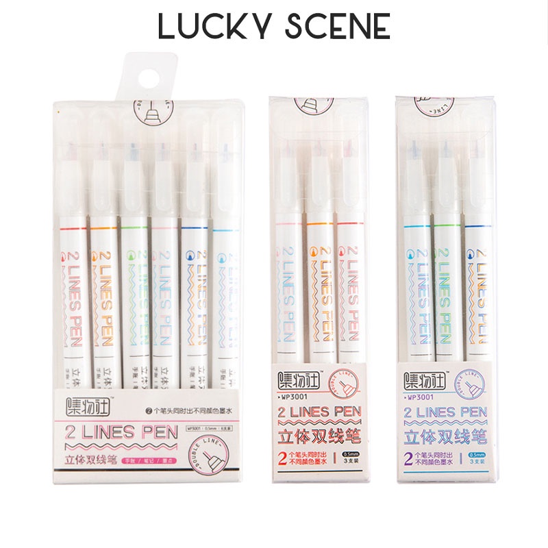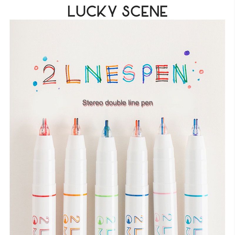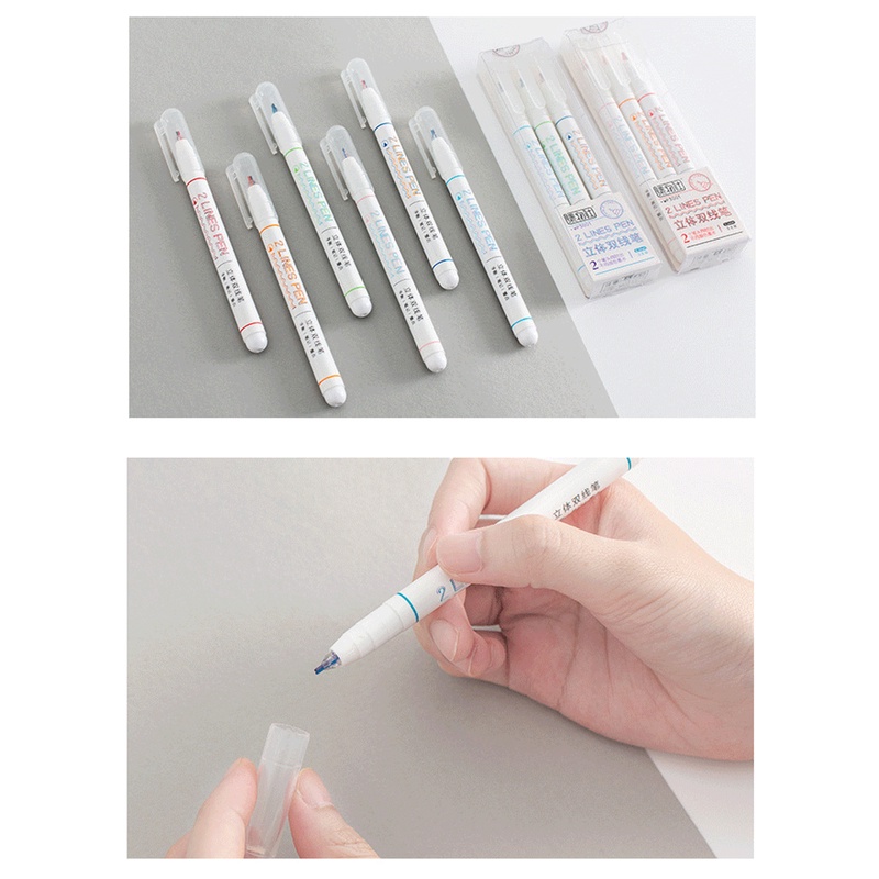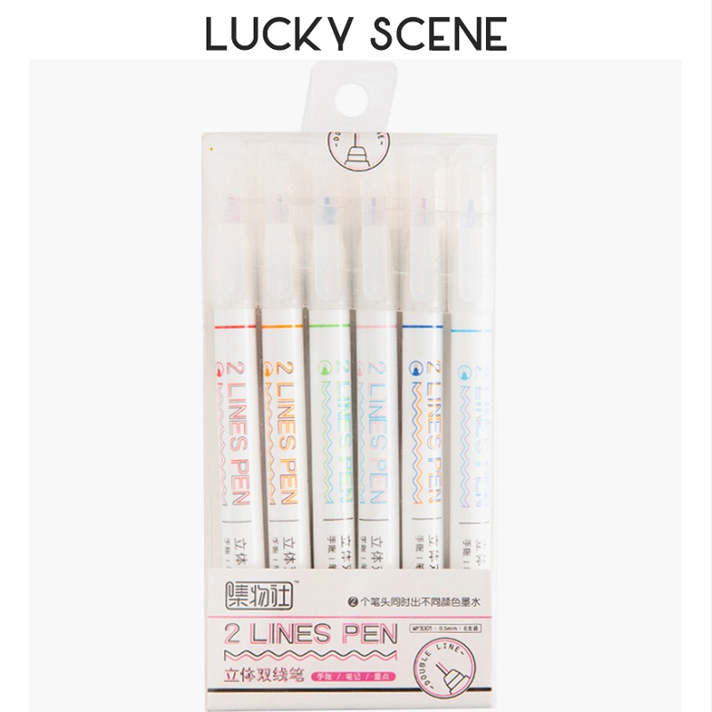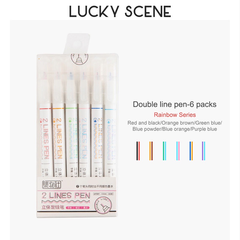 6Pcs Three-Dimensional Double Line Pen Two-Color Drawing Marker Pen Student Accounting Pen Outline Pen Office Stationery S00938