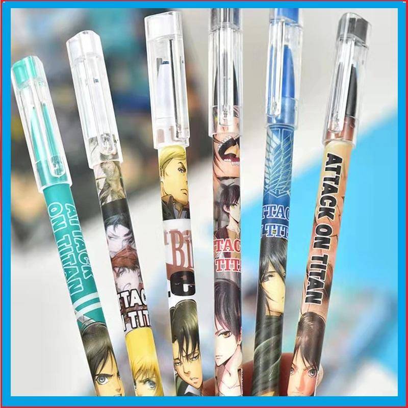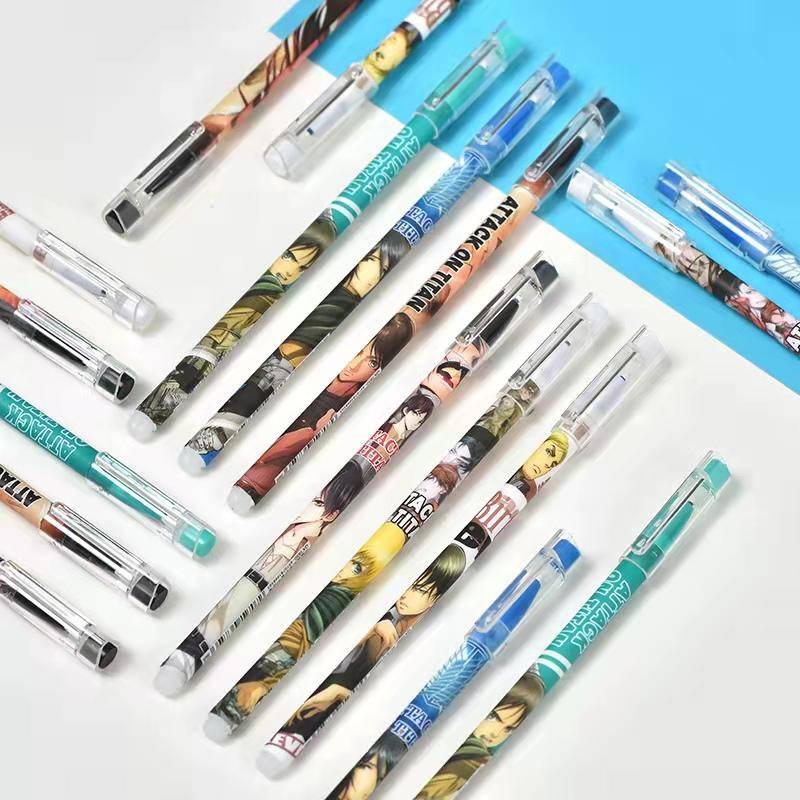 6Pcs/lot Anime Attack on Titan Erasable Pen Blue Black Ink Magic Gel Pen School Office Writing Supply gift Figma Eren Jaeger Mikasa Ackerman Levi Rivaille Rival Ackerman