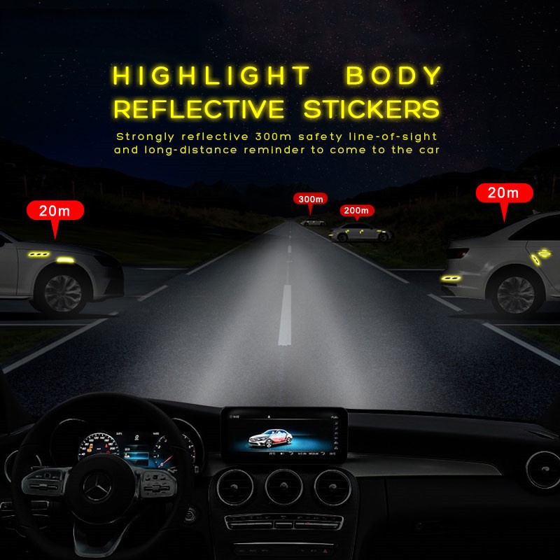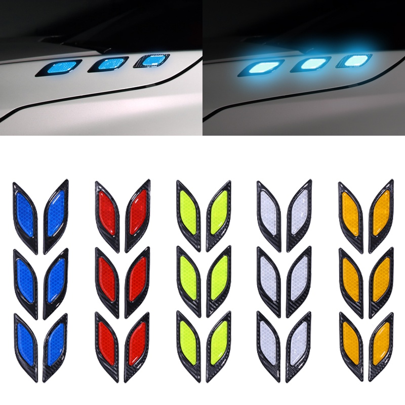6Pieces/set Car Reflective Stickers Anti-Scratch Safety Warning Sticker for Truck Auto Engine Exterior Decorative Accessories