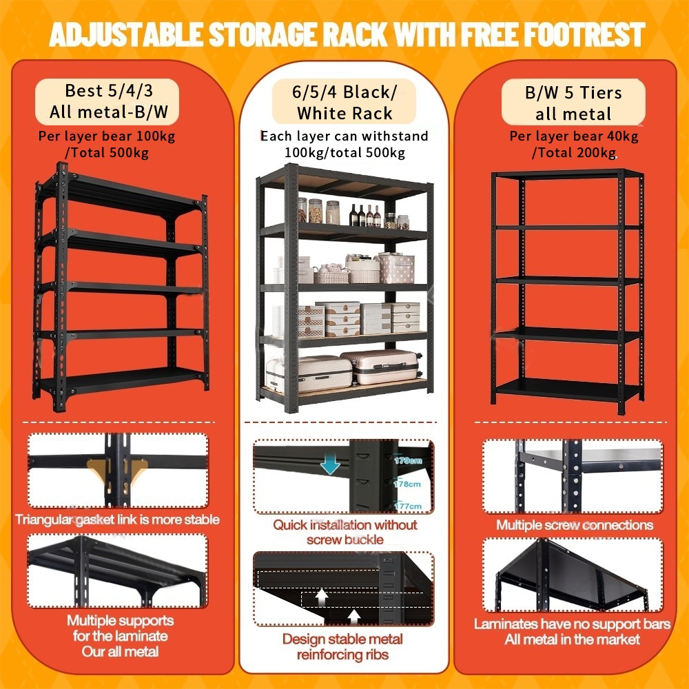 【LianLing】3-5 Tier Metal Boltless Rack Home kitchen Store Storage Rack Warehouse Rak Besi Serbaguna Bertingkat Livin Rack Boltless Rack Shelf