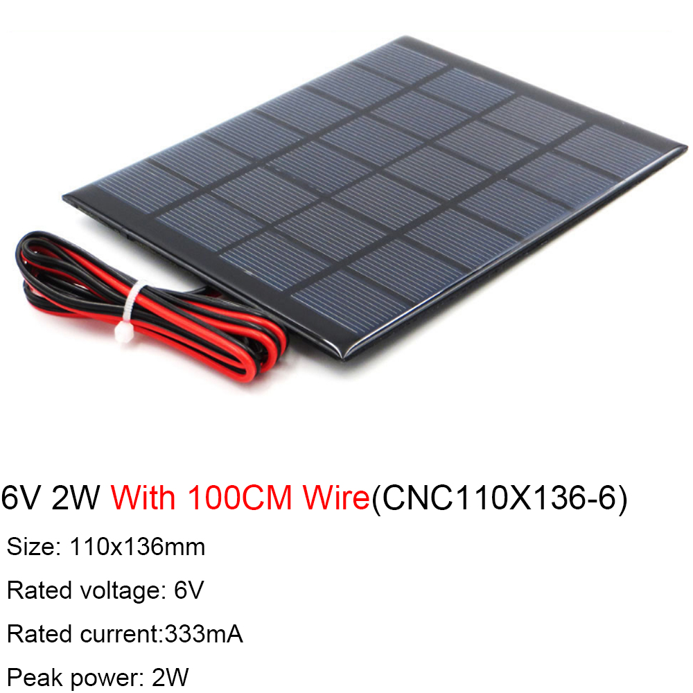 6V Solar Panel With 30 100 200CM Wire Mini Solar System DIY For Battery Cell Phone Charger 0.6W 1W 1.1W 2W 3W 3.5W 4.5W 6W 10W