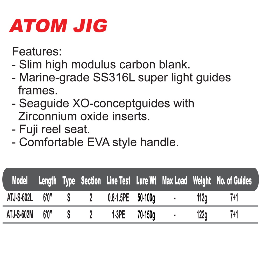 Ajiking Atom Jig Joran Pancing Jigging Spinning | 6kaki |Butt Joint |FUJI Guides TCE Tackles Fishing Rod