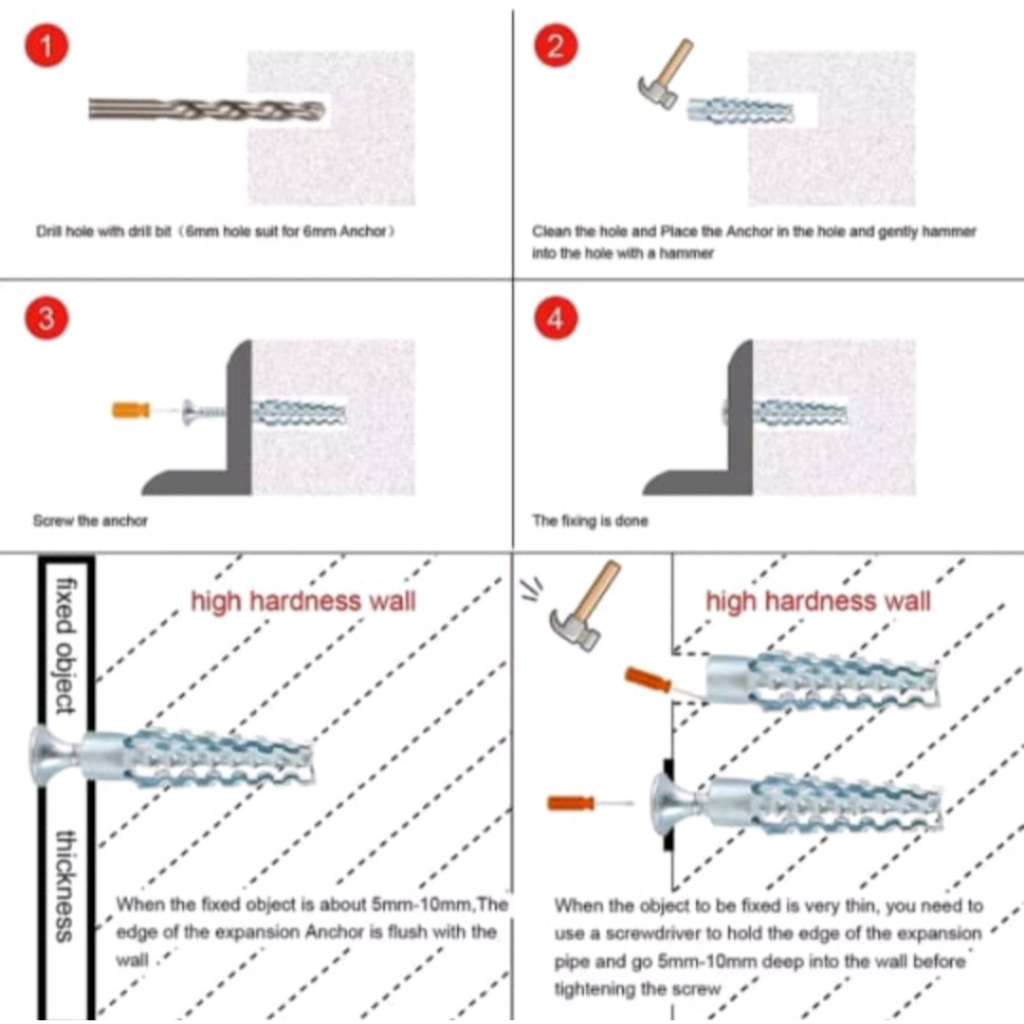 6mm & 8mm Heavy Duty Steel Wall Plug & Screw