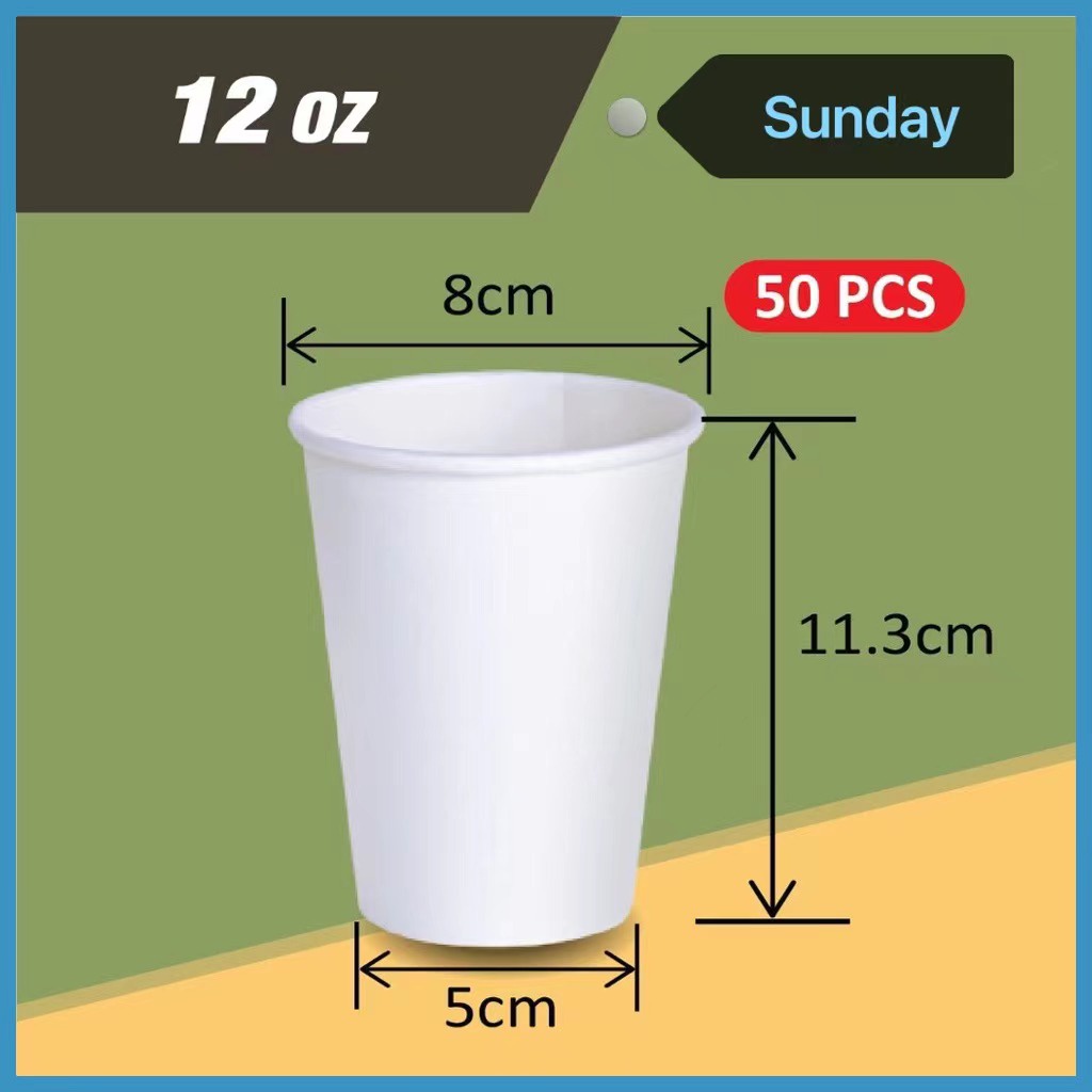 6oz/9oz/12oz Disposable Paper Cup (50pcs) White Disposable Hot Drink Cup Cafe Takeaway Cup Cawan Kertas Kenduri Cawan