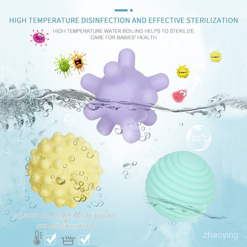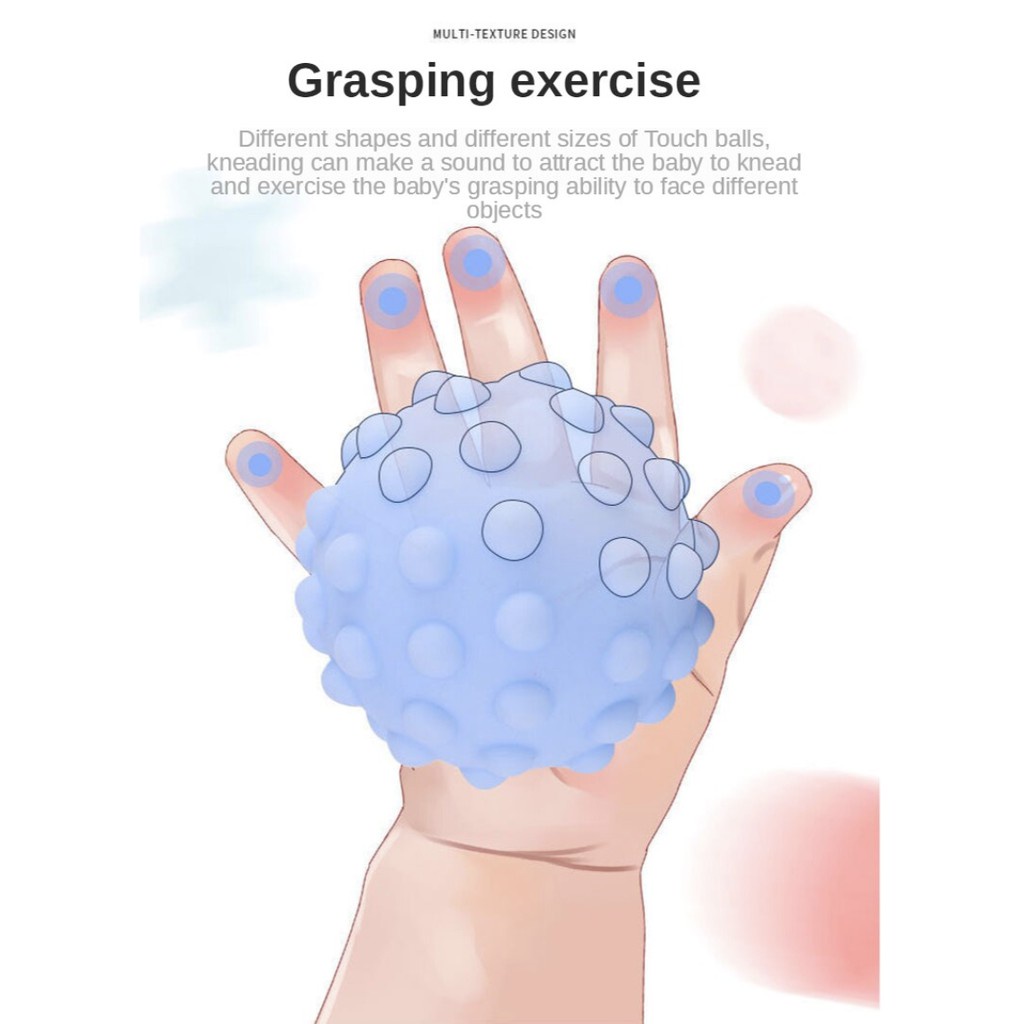 6pcs Baby Sensory Ball Toys Baby Ball Teether Soft Bell Rubber Early Learning Sensory Toy Baby Squishy Toy Mainan Ball