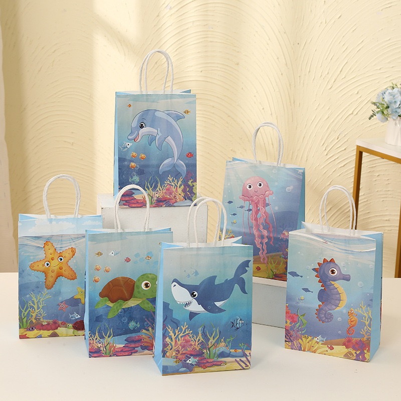 6pcs Ocean Animal Gift Bag Mermaid Party Under The Sea Birthday Party Supplies Cute Dolphin Seahorse Jellyfish Shark Gifts Ba
