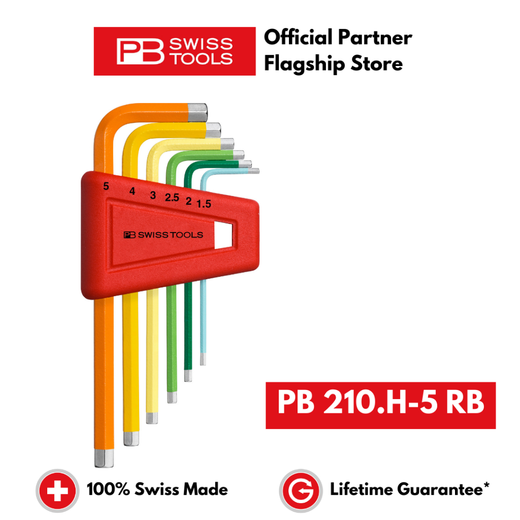 6pcs Set PB Swiss Tools Hexagon Allen Key L-wrenches PB 210.H-5 RB