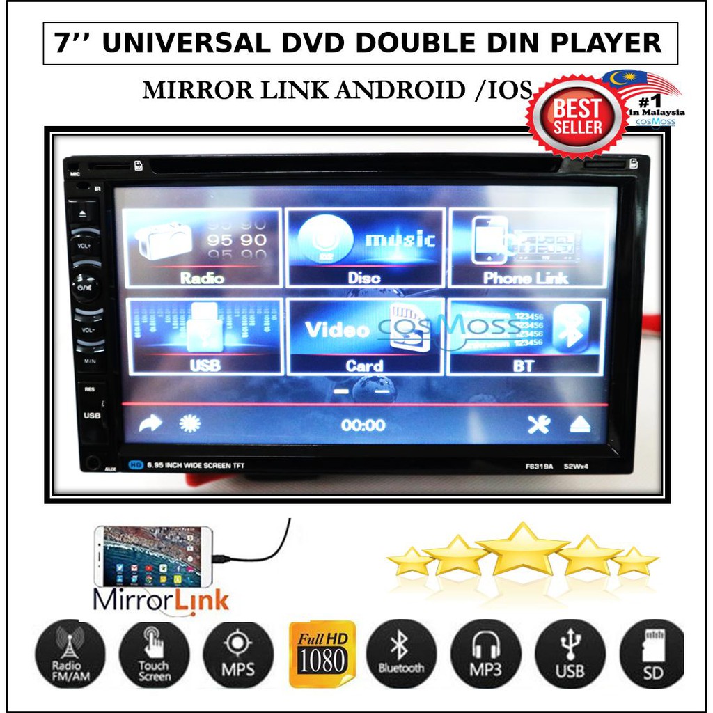 7'' UNIVERSAL FULL TOUCH SCREEN HD MP4/MP5 USB MIRROR LINK DVD DOUBLE DIN PLAYER