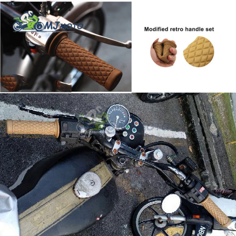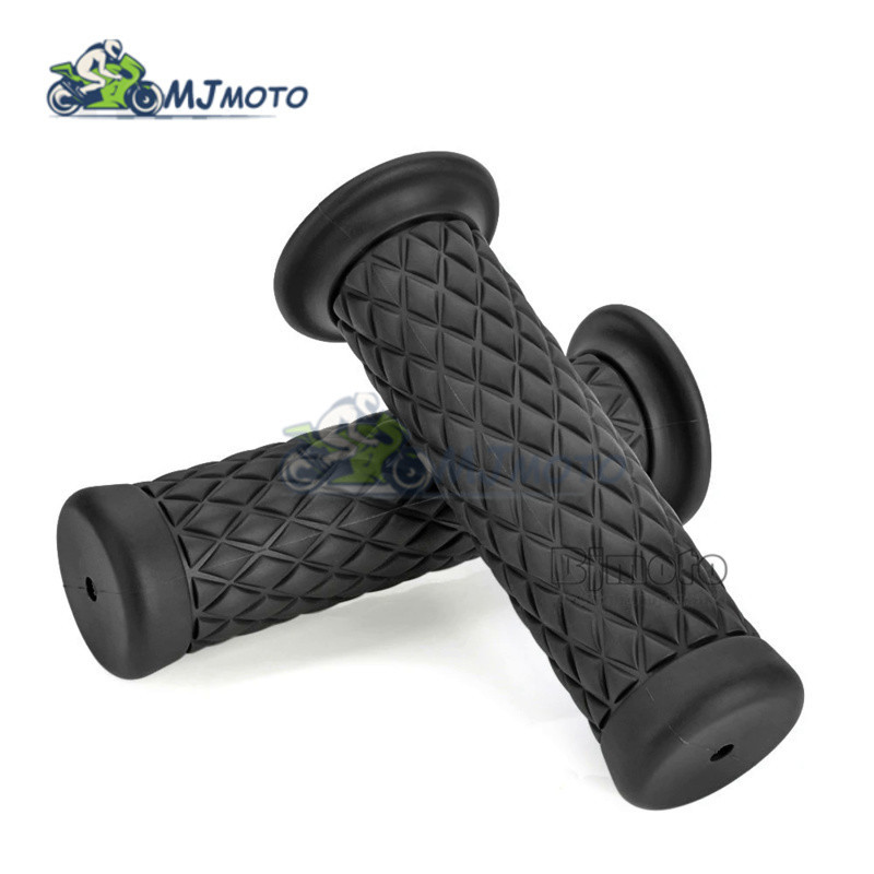 7/8" 22mm Motorcycl Retro Rubber Handle bar Grip Anti-slip Handle Grip for Bobber Cafe Racer Sport Bike Handle Throttle Grip ATV