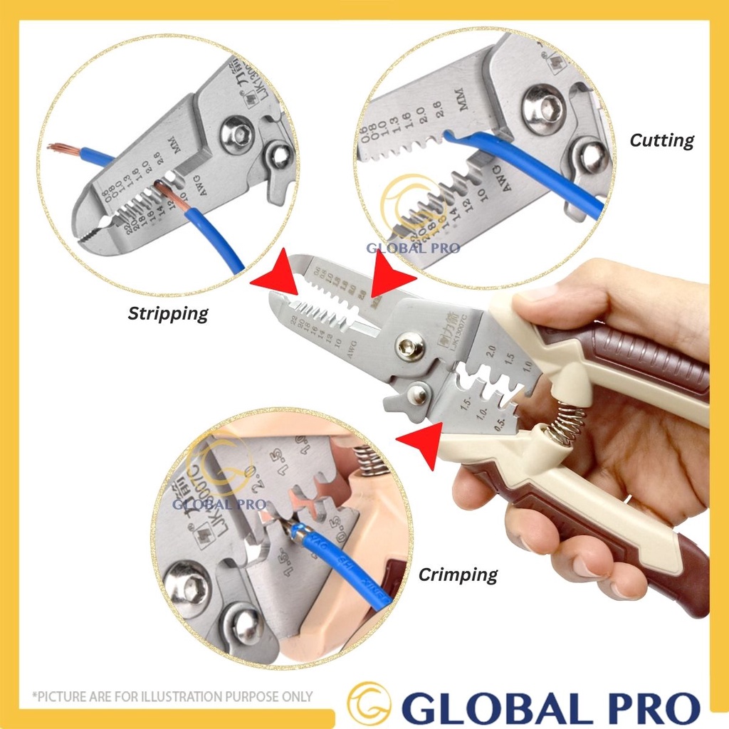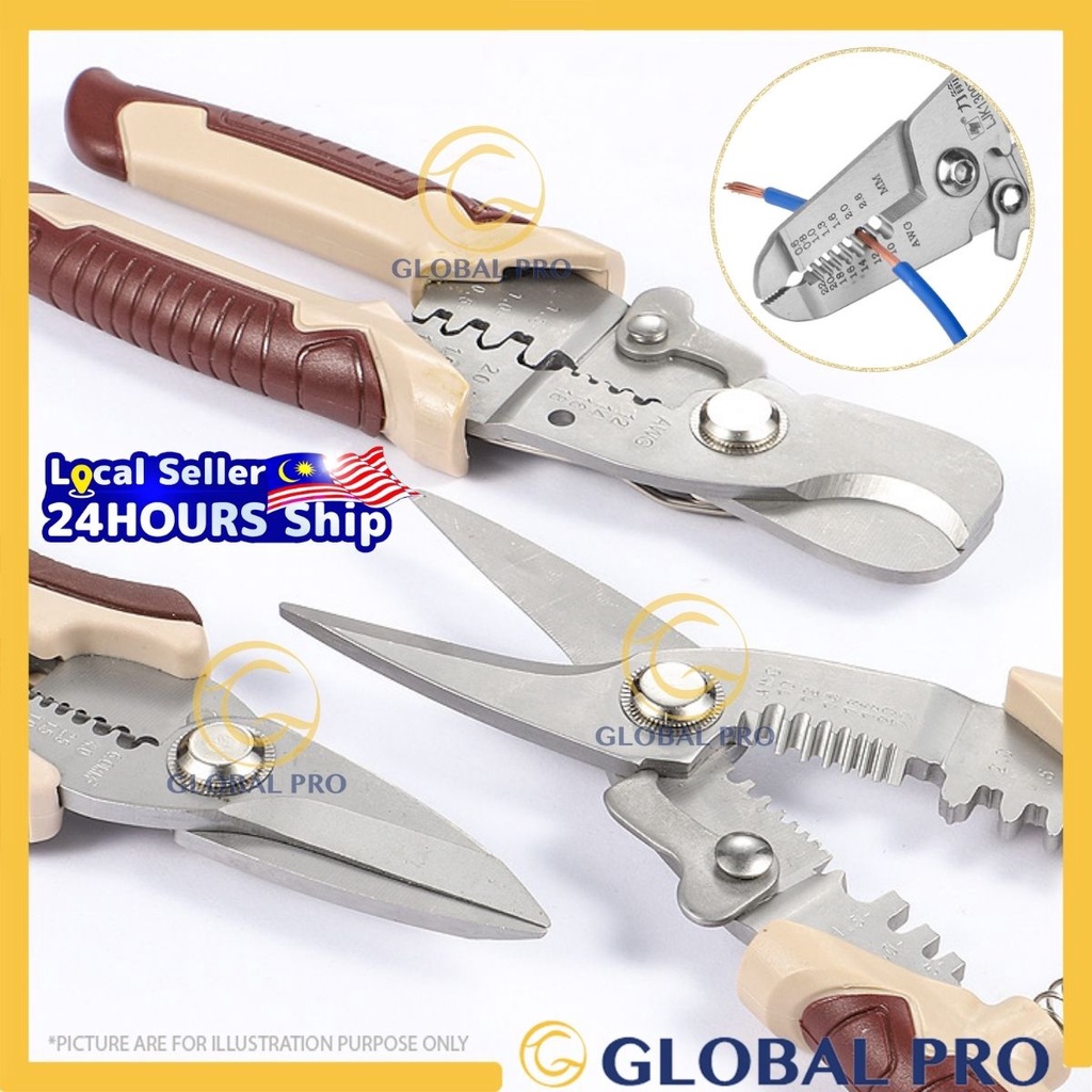7"/8" Multi Wire Cutter Crimping Tool Stripper Wire Pliers Electrician Tools Terminal Wire Scissors Cutter Potong Wayar