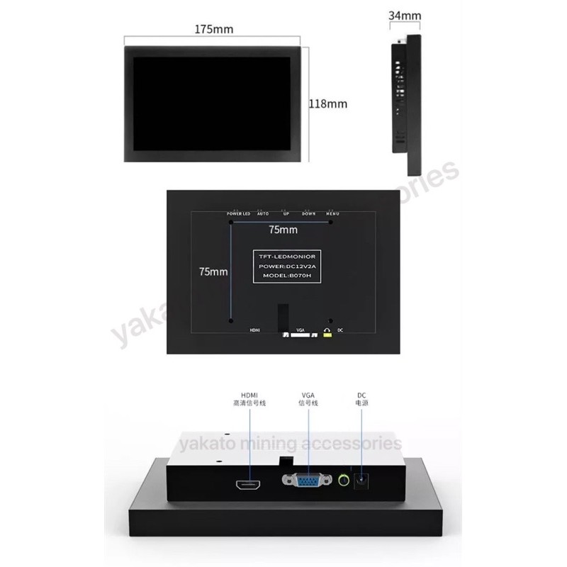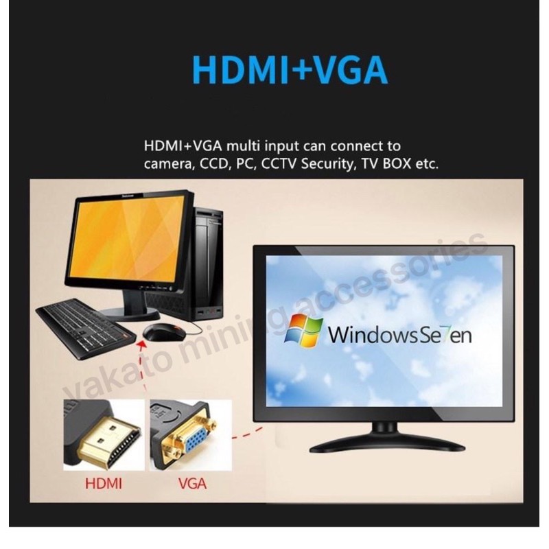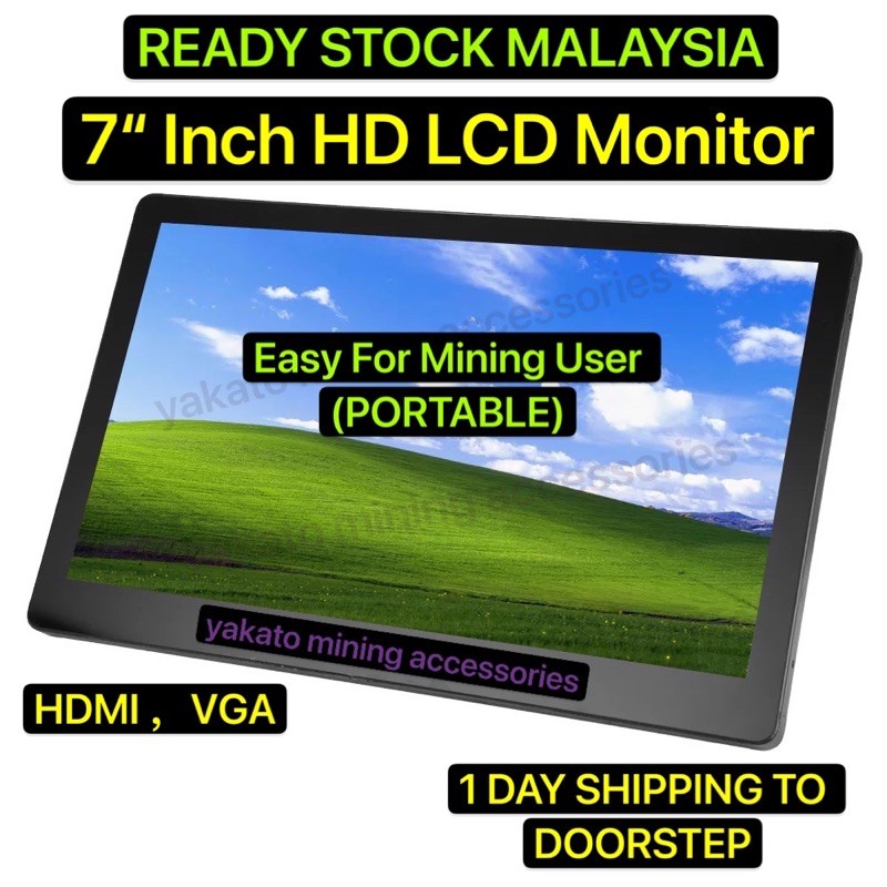 7 & 9 inch Mini Portable HD LCD Monitor Computer Monitor with HDMI VGA input VESA Mount for CCTV, PC Display Mining Rig