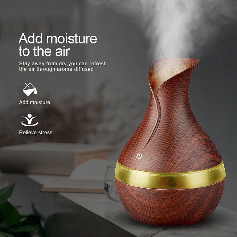 7 Color LED Light Ultrasonic Aroma Diffuser Touch Button Control Humidifiers (Light Brown)