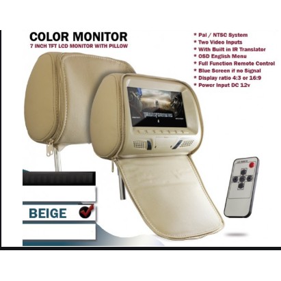 7 INCH TFT LCD CAR 12V DVD USB Monitor Headrest With Universal Pillow 1080P