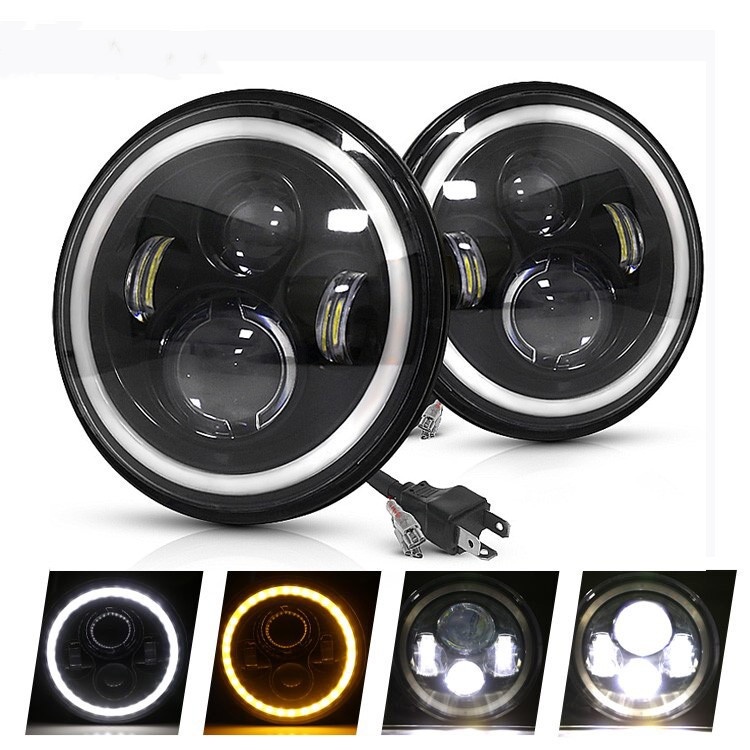 7 Inch 75W LED Headlight for Harley Yamaha Honda Motorcycle High Low Beam Lamp Halo Headlamp Round Black