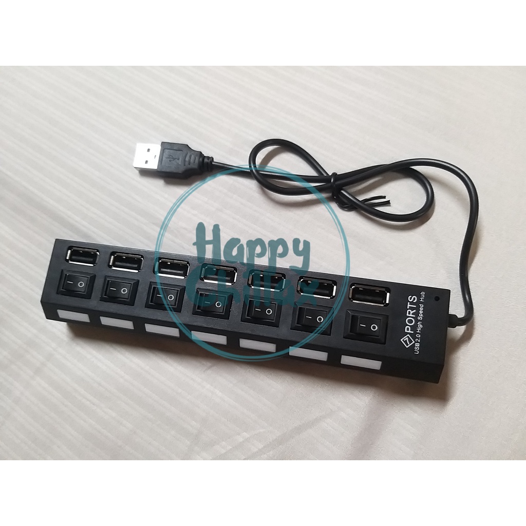 7 Port Extender USB Hub Expansion High Speed USB 2.0 with On Off Button