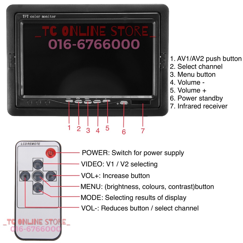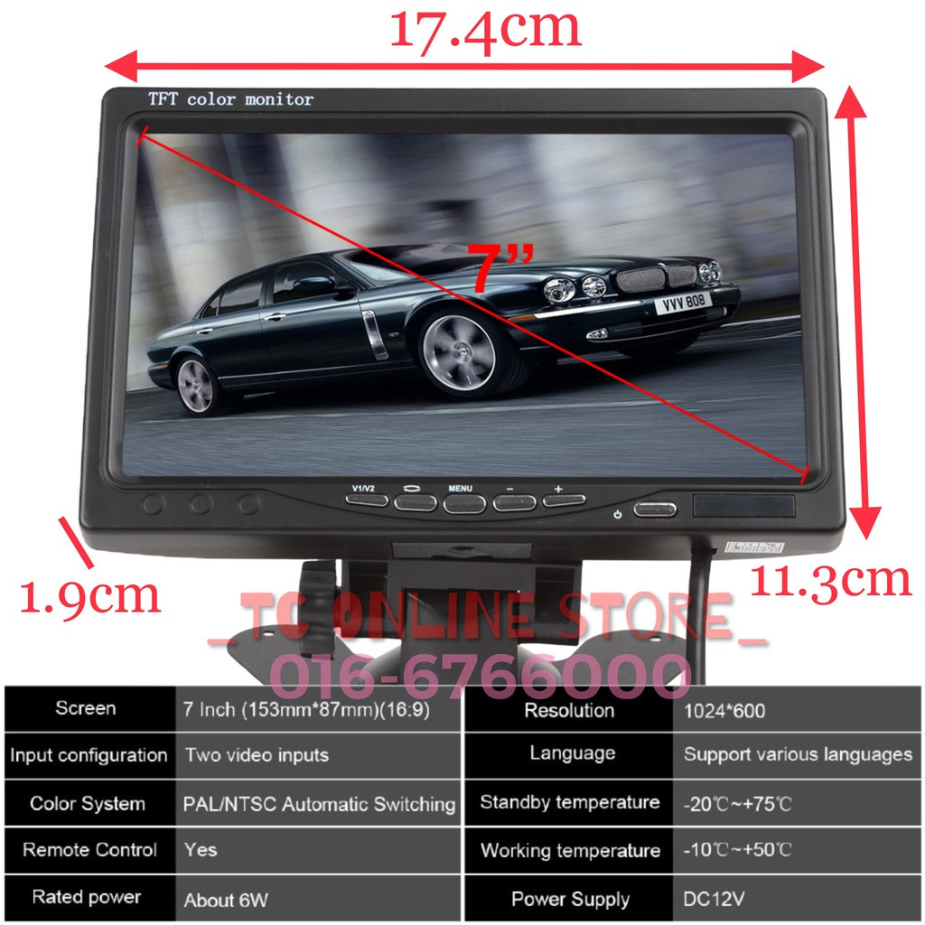 7" TFT LCD Colour Monitor Car Rear View Monitor for DVD VCD GPS Rear View Reverse Camera With Remote and Stand