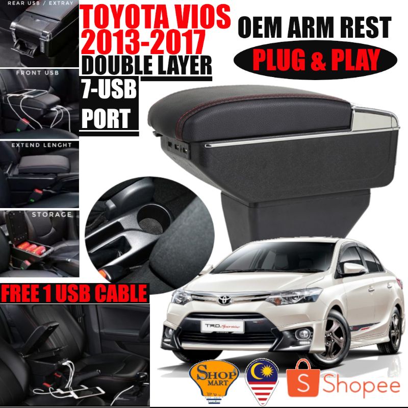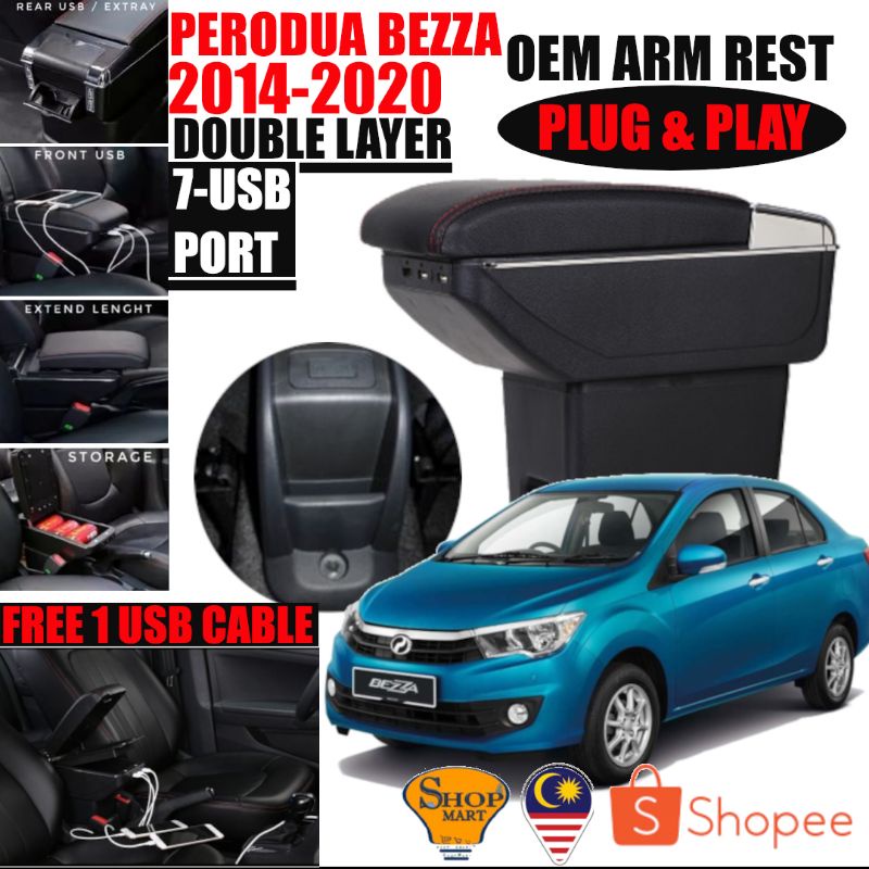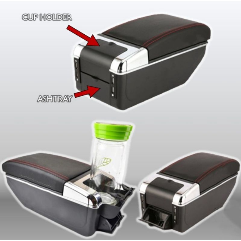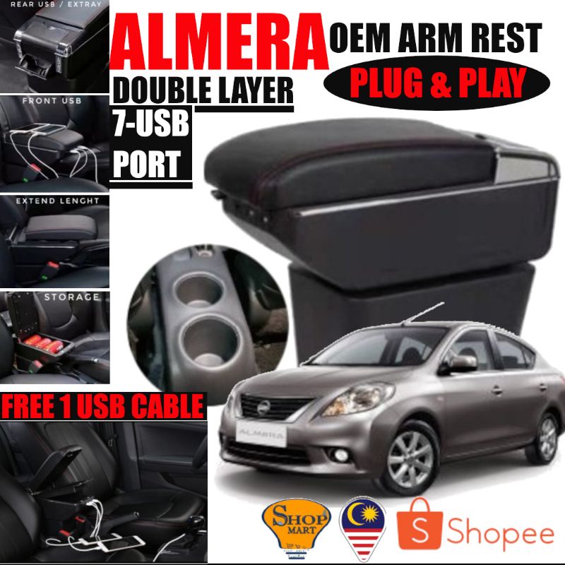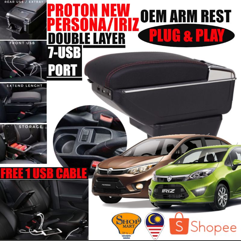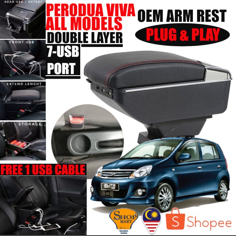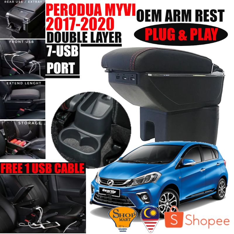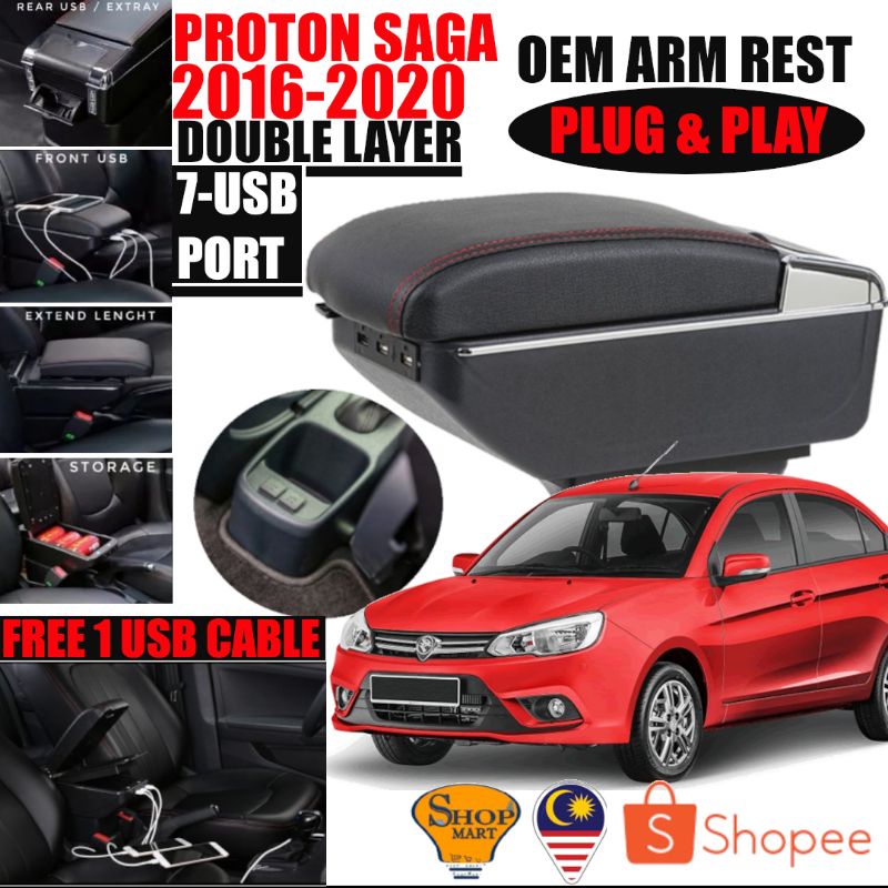 7 USB Port Car Arm Rest Armrest Console Box Organizer Double Layer Storage Proton Perodua Armrest