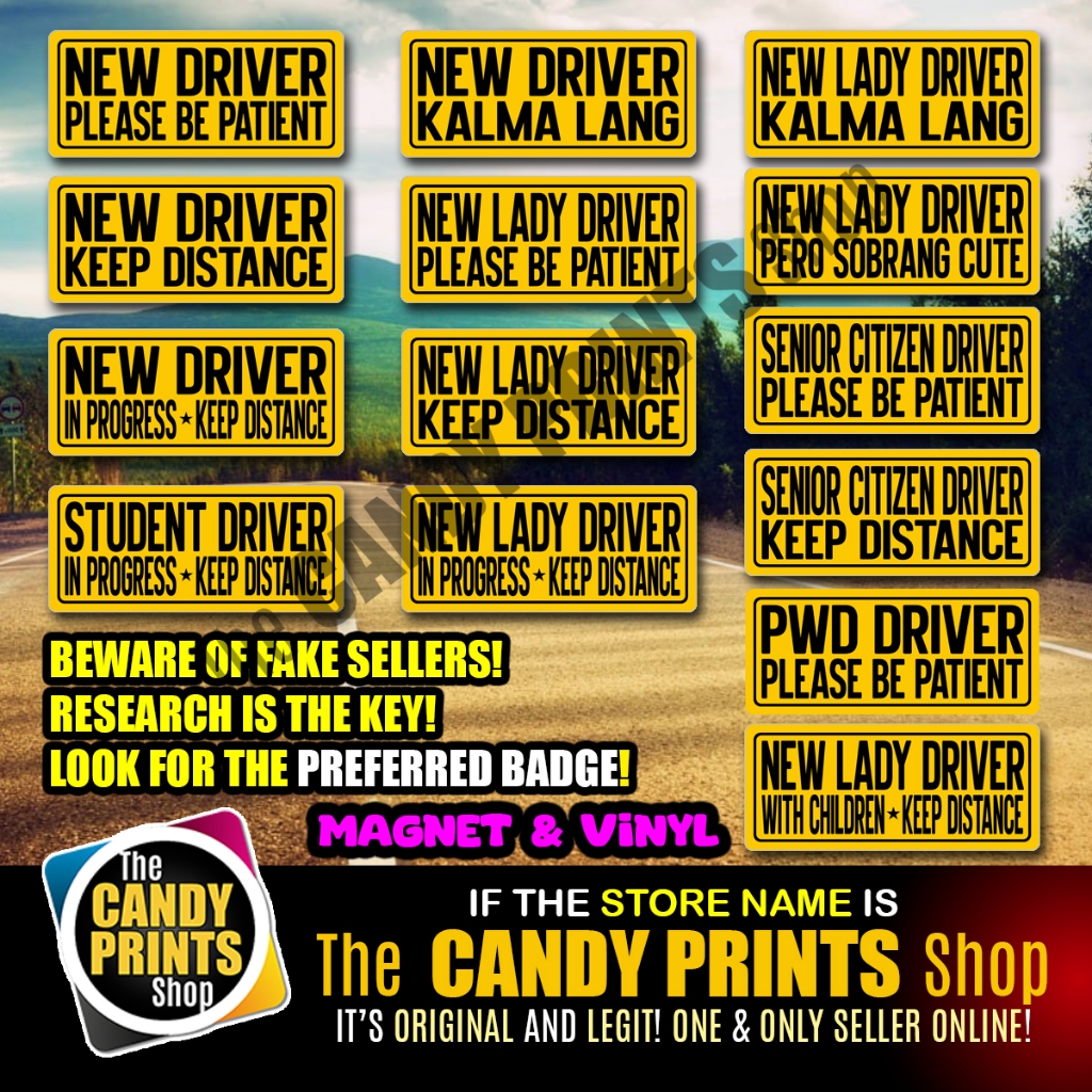 7 x 3 inches - Magnetic and Vinyl Car Sticker (NEW & LADY DRIVER, SENIOR CITIZEN DRIVER, PWD DRIVER)