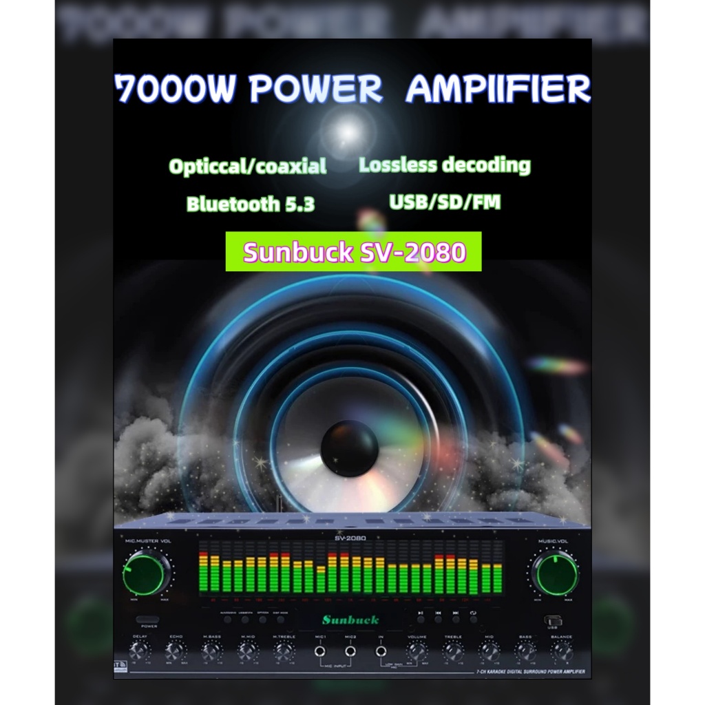 7000W 7 channel Home Audio Amplifier Subwoofer HiFi Stereo Surround Sound Digital Powerful Home Karaoke system Cinema Home Theater Stereo Amplifier support FM USB 3Mics