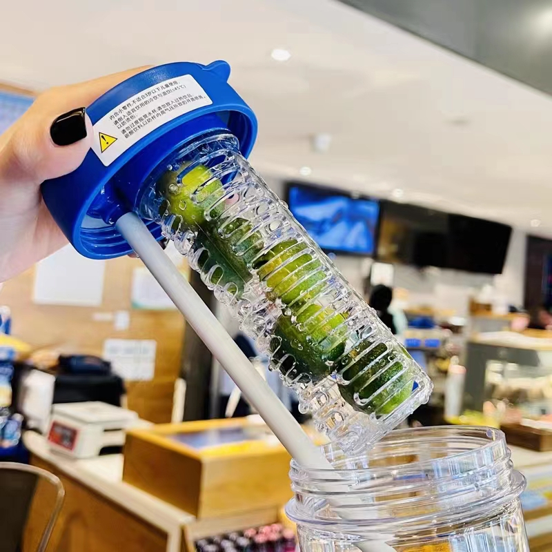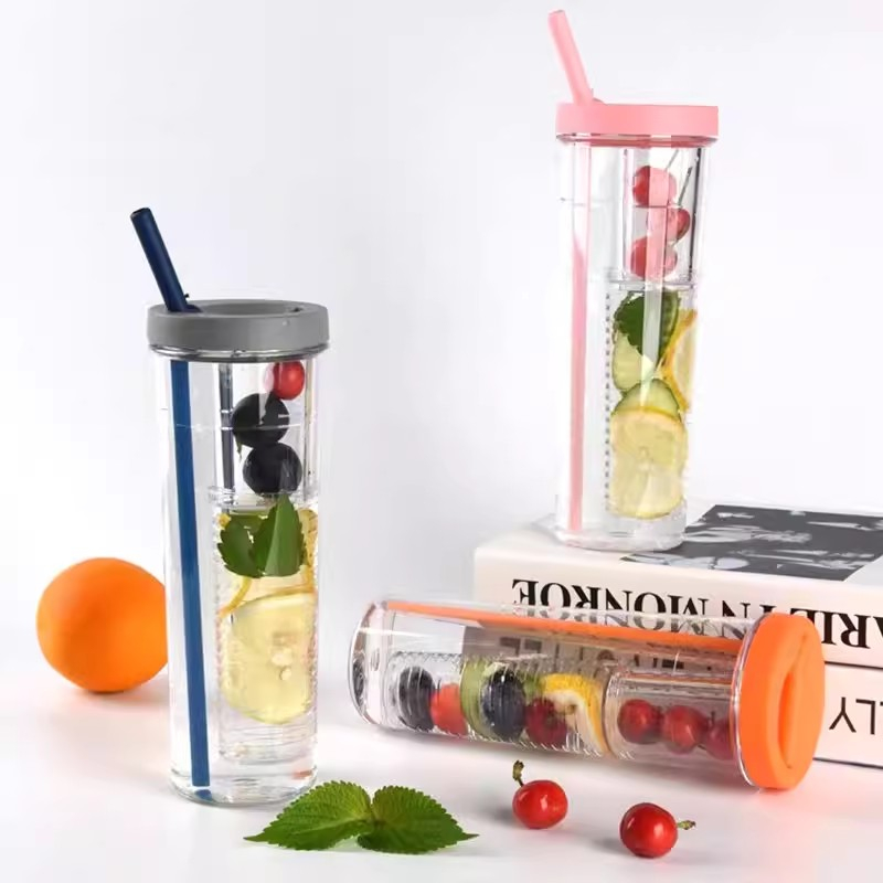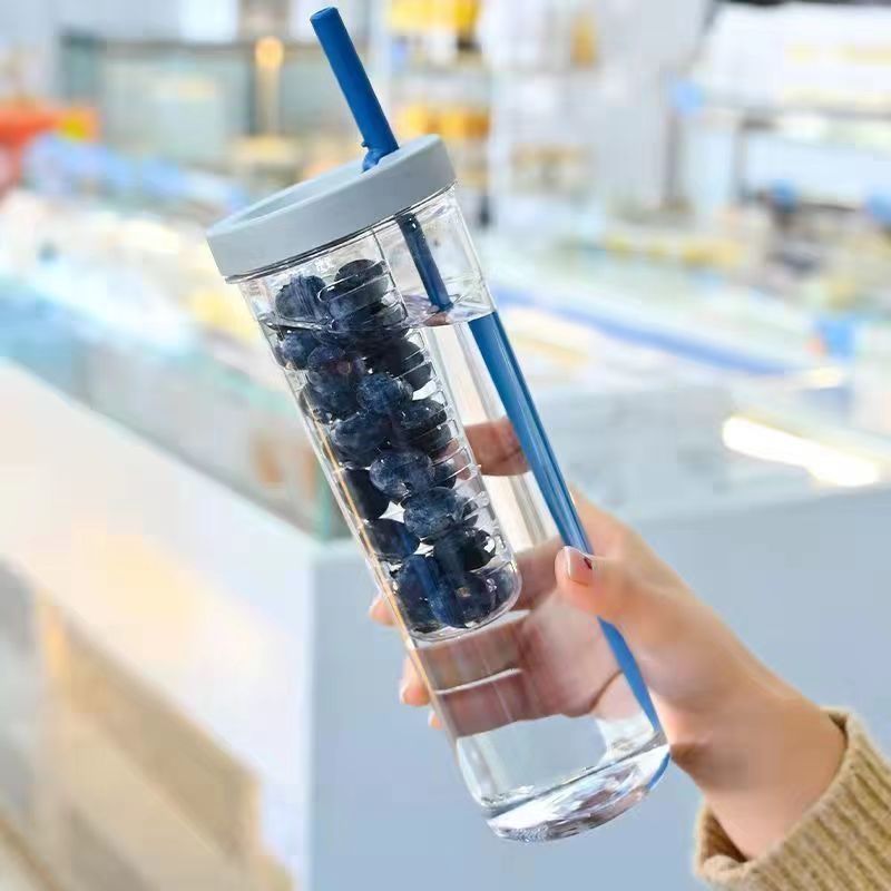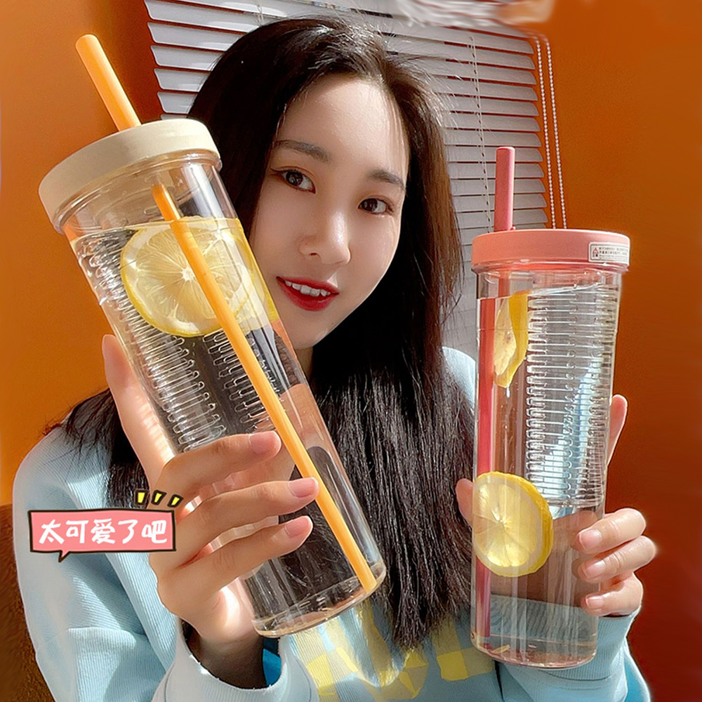 700ml Fruit Cup Bottle With Foldable Straw Tumbler Drinking Cup, INS Water Cup Students Teacups Outdoor Drinking Cup Picnic Travel Supplies