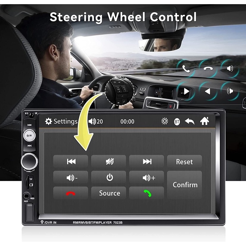 7010B 7" Double Din Touch Screen Car Radio Stereo Bluetooth MP5 Player With Reverse Camera and Steering Remote Controller