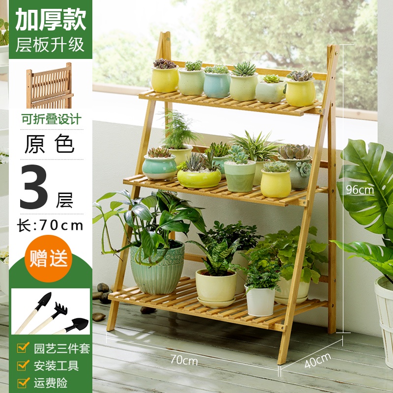 70Cm 3 Layer Bamboo Wood Ladder Plant Foldable Flower Display Shelf Rack Shelves
