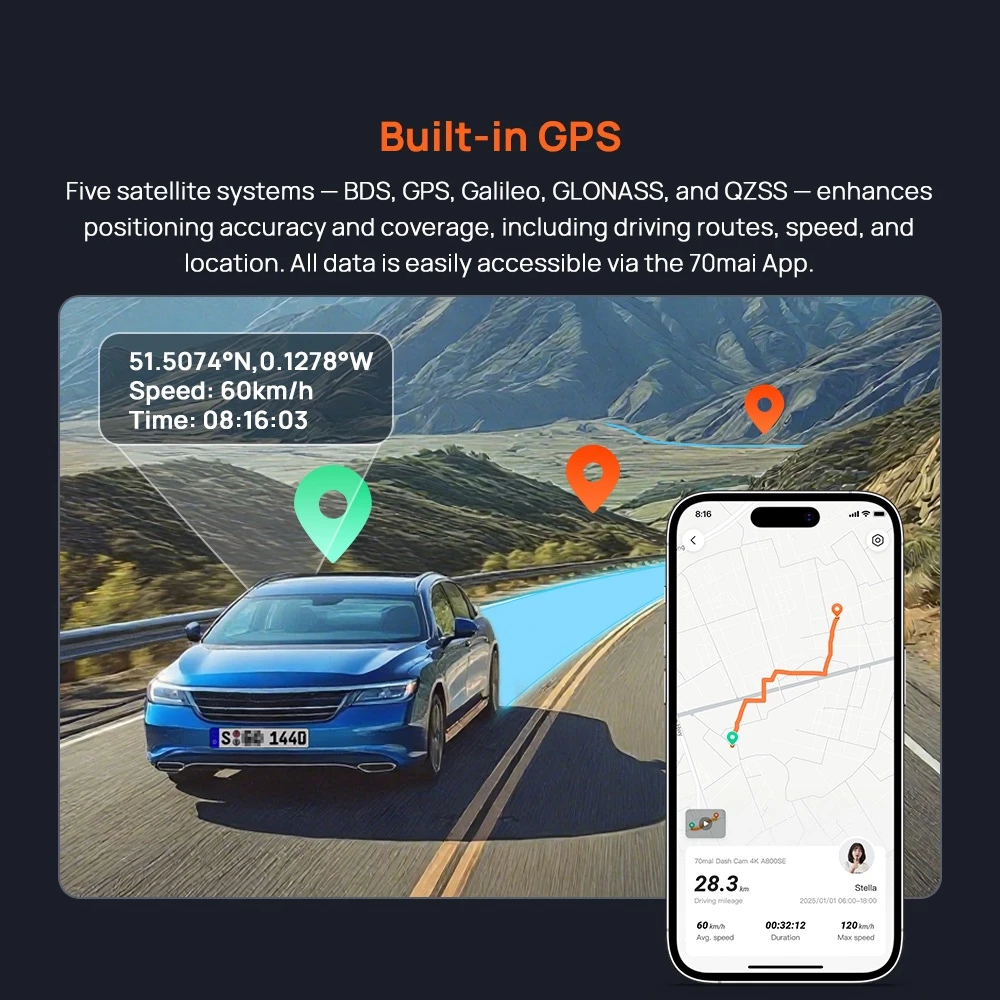 70mai A800SE Dashcam 4K Resolution + HDR | Built-in GPS & ADAS | Supercapacitor | Dual-Channel | App Control