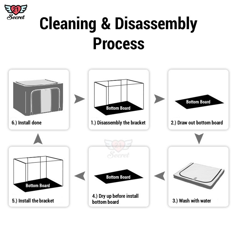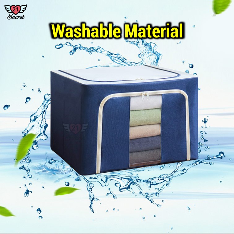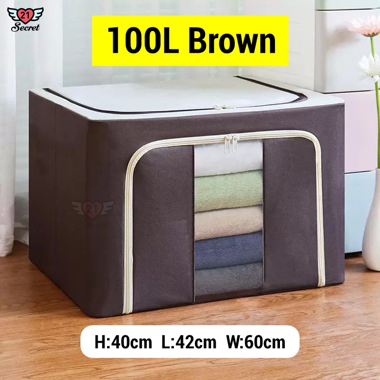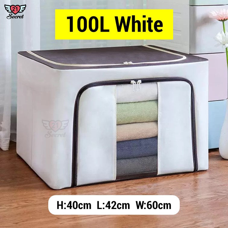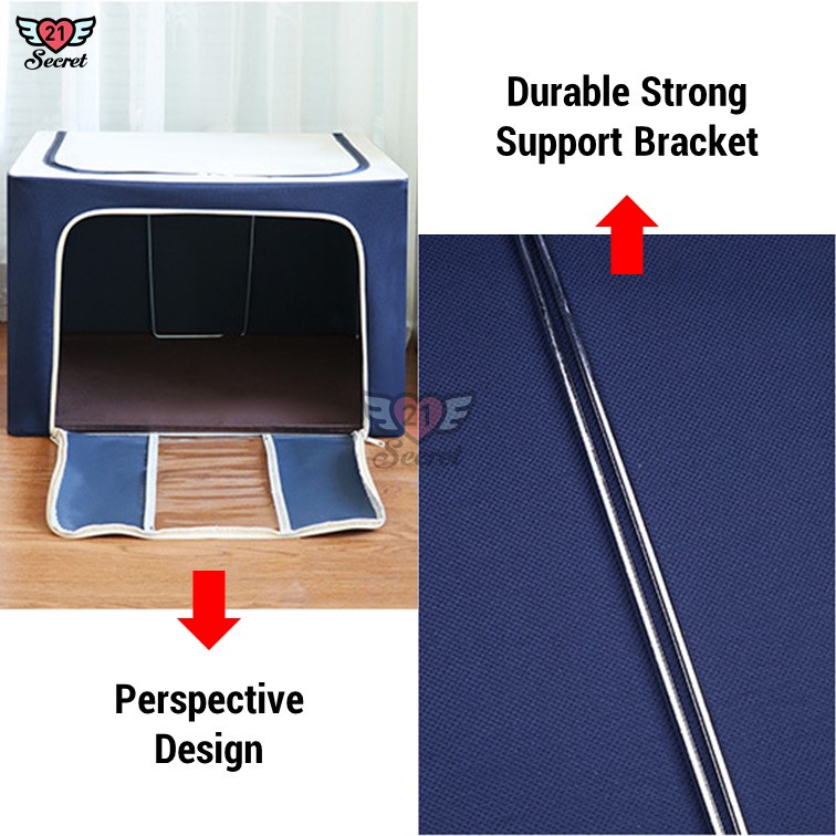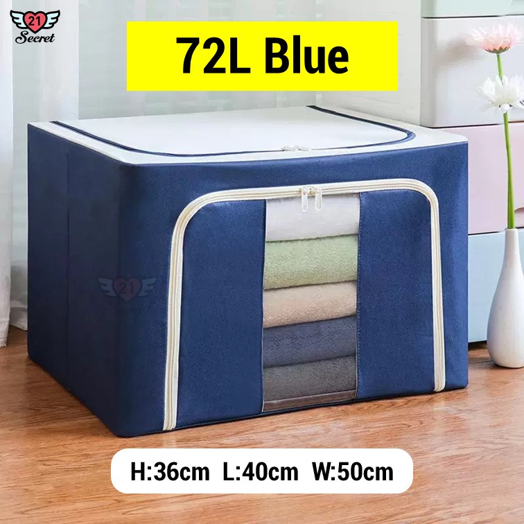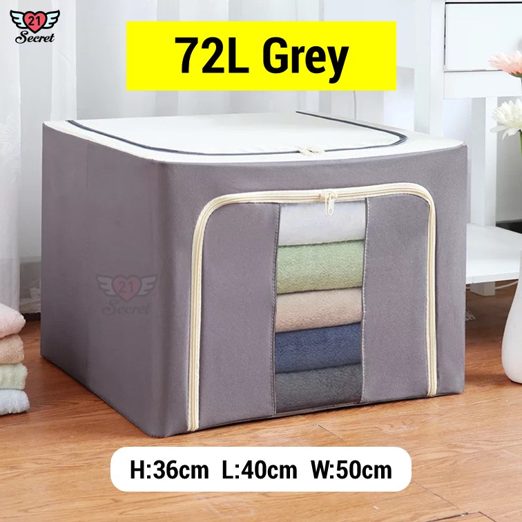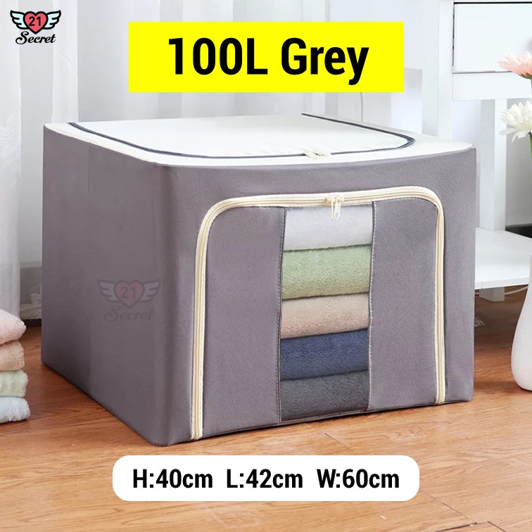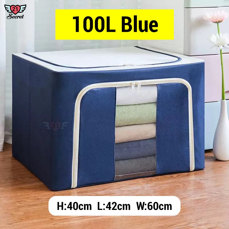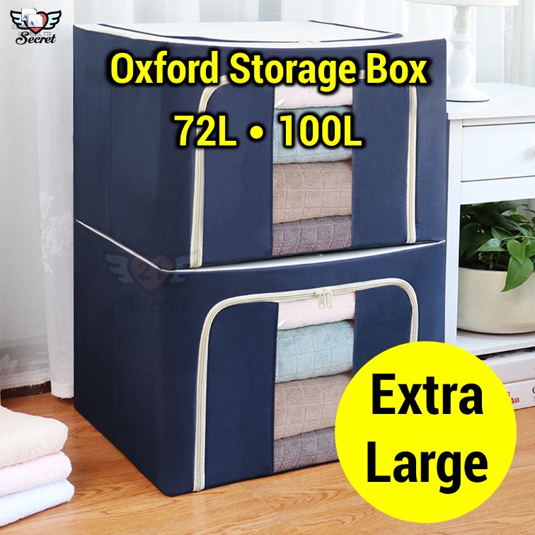 72L 100L Oxford Storage Box Foldable Extra Large Detachable Cloth Storage Cloth Organiser Steel Frame Kotak Simpanan