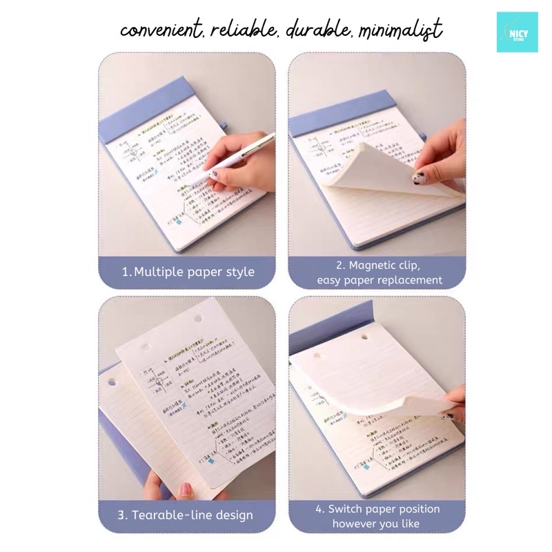 74 pages refillable weekly planner, daily planner and notebook with magnetic hard cover (Minimalist Design)