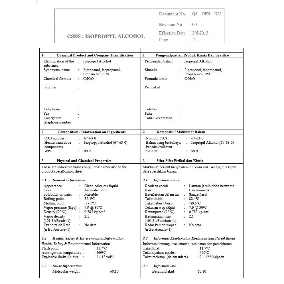 75% Isopropyl Alcohol / IPA / Rubbing Alcohol 1 Liter