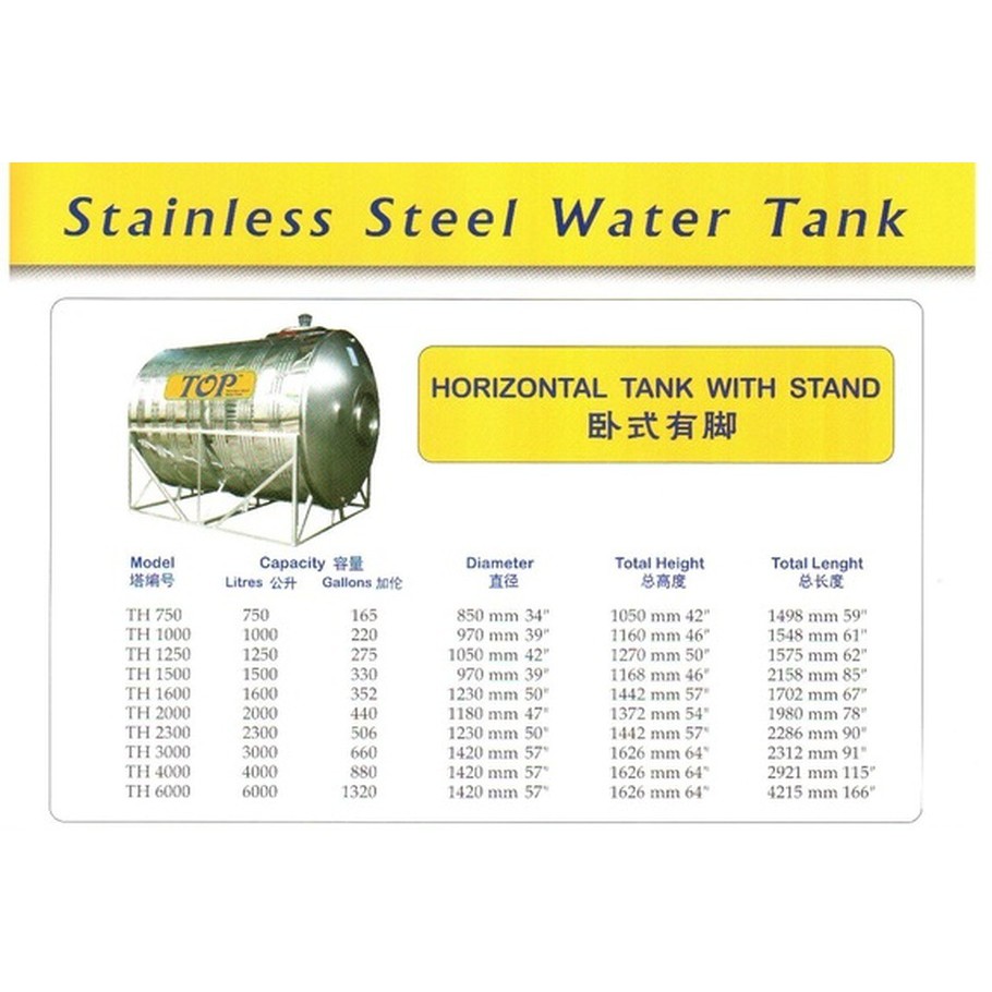 750 LITERS ~ 6000 LITERS STAINLESS STEEL 304 HORIZONTAL WATER TANK C/W STAND (TOP)