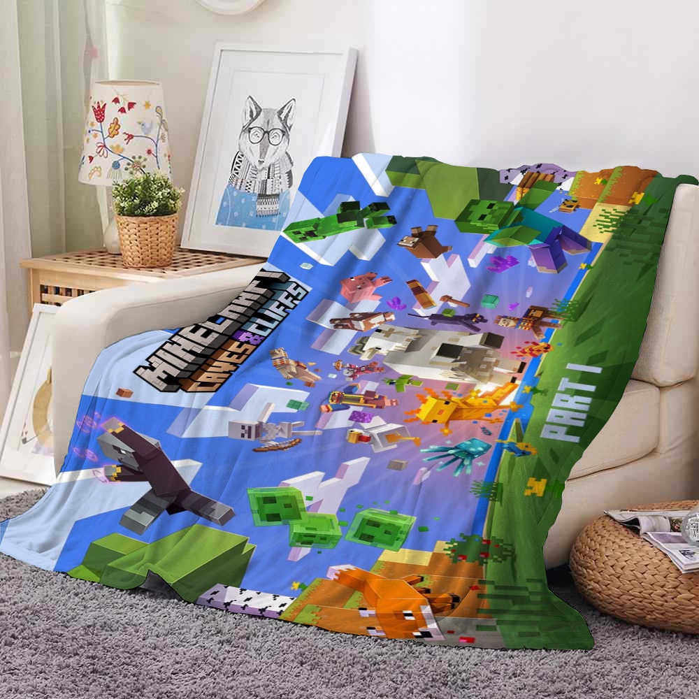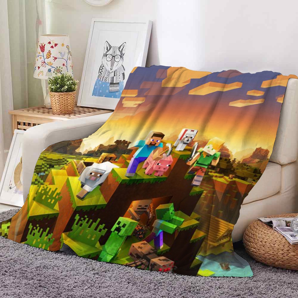 75cmx100cm Minecraft Character 3D Printed Flannel Blanket Creeper Steve Soft Comfortable Bedding Blanket for Sleeping