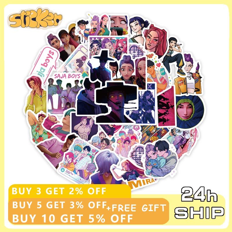 74pcs Anime K-Pop Demon Hunters Stickers DIY Scrapbooking Phone Luggage Skateboard Waterproof Decal