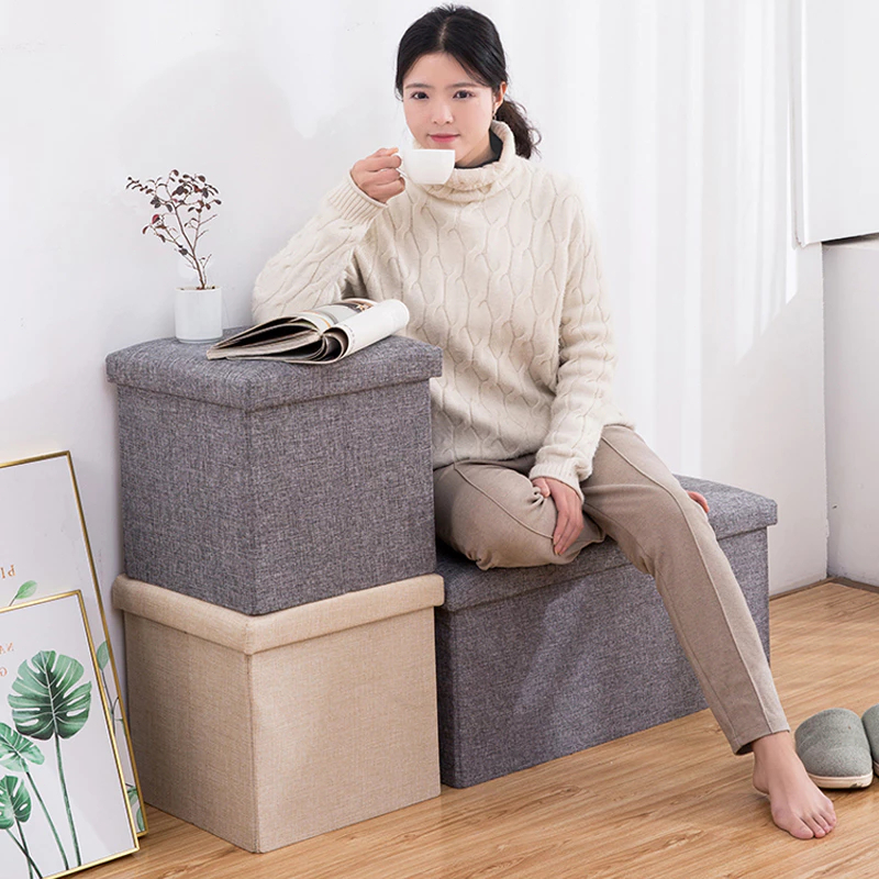 76 x 38 x 38cm Foldable Storage Stool sofa Foldable Home Organizer Storage Box Stool Bench Seat